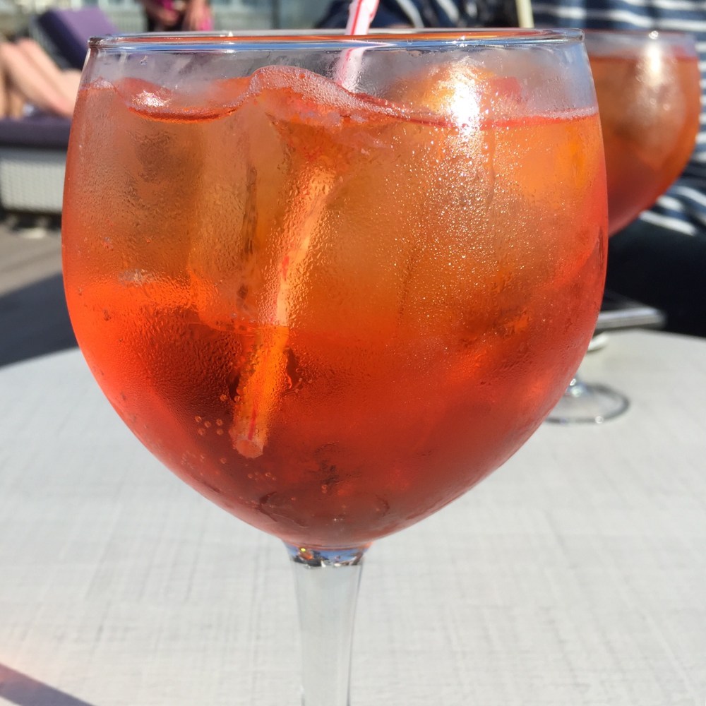 Sedan har vi njutit av ljumma vindar ochvacker utsikt från hotellets takterrass där vi sög i oss en gigantisk Aperol Spritz innan vi gick ned och åt en helt magisk buffé som bjöd på allt gott man kan tänka sig mellan himmel och jord. Den kommer hjälpa oss att hålla vikten efter alla cykling.
