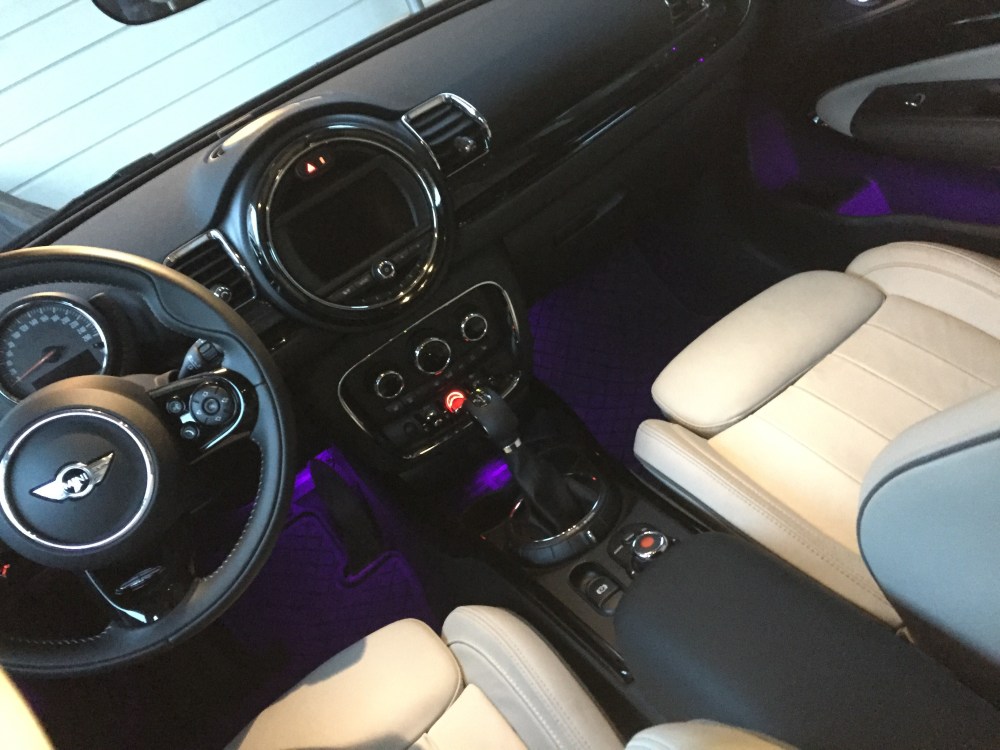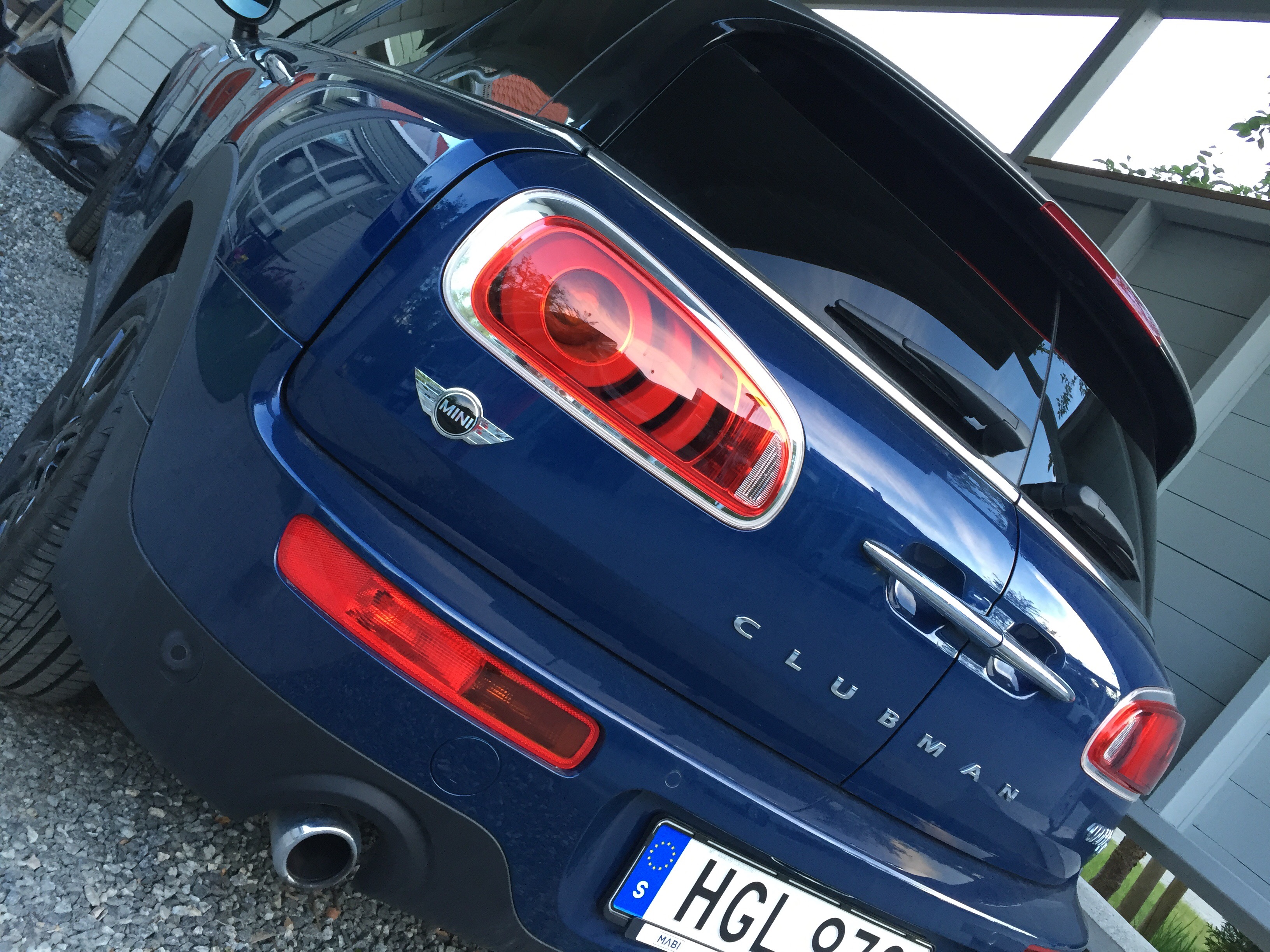 När jag skulle hämta min bil, så hade de stött på lite problem som de inte hann lösa innan de stängde. Då blev jag placerad i en mörkblå Mini Clubman med automatlåda. Det kändes som att sätta sig i ett vardagsrum när man sjönk ned i de läckra sportstolarna omsluten av en ljusgrå läderklädsel. Jag måste säga att det var en riktigt trevlig bil att köra och bompabompastereon gjorde ju inte färden mindre skoj. Mr Countryman blev Mr Clubman för en dag 😎
