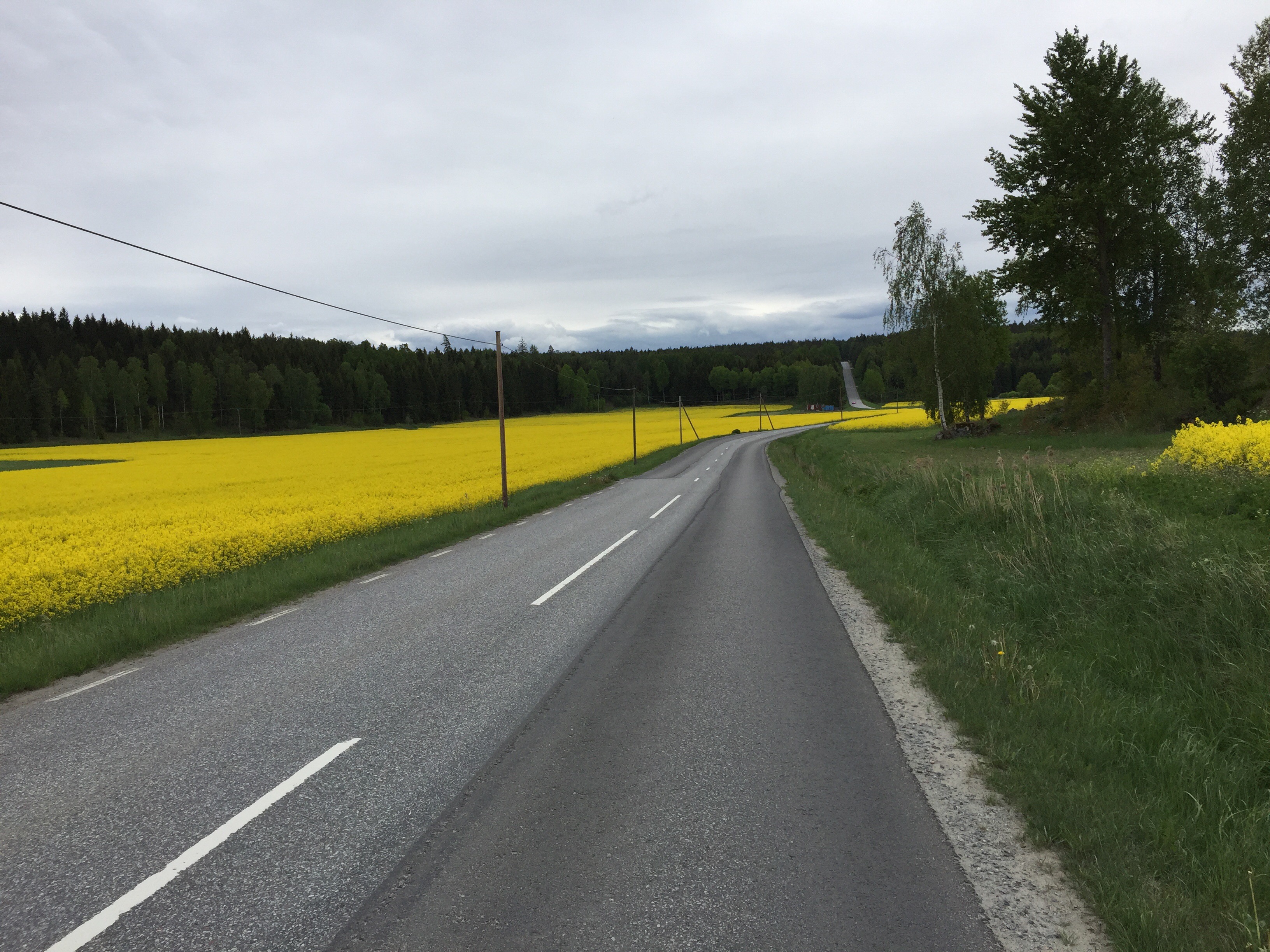 Framåt lunch och med nymonterade däck satte jag fart på min cykel i ett helt annat väder. Här var det halvklart och sådär lagom försommarvarmt. Jag bestämde mig för att köra en av mina mer kuperade rundor som är ca 60 km lång. Det var ungefär en vecka sedan jag satt på en cykel och jag vet inte om det var all god öl jag drack igår på jobbets sommarfest, men jag tyckte jag hade bra klipp i benen idag.