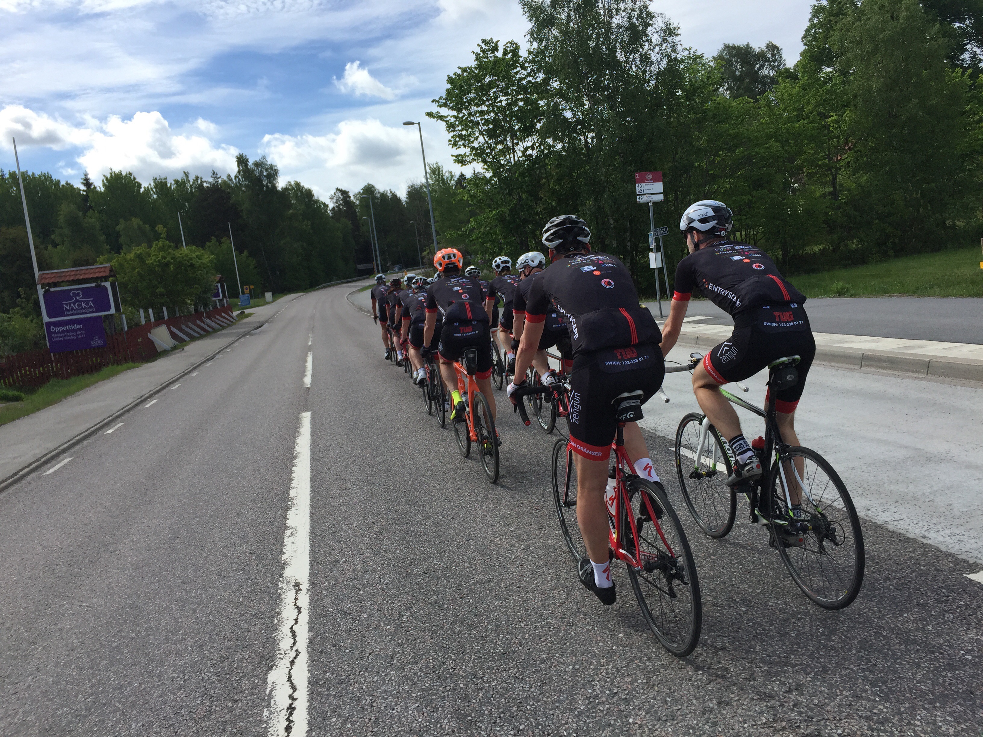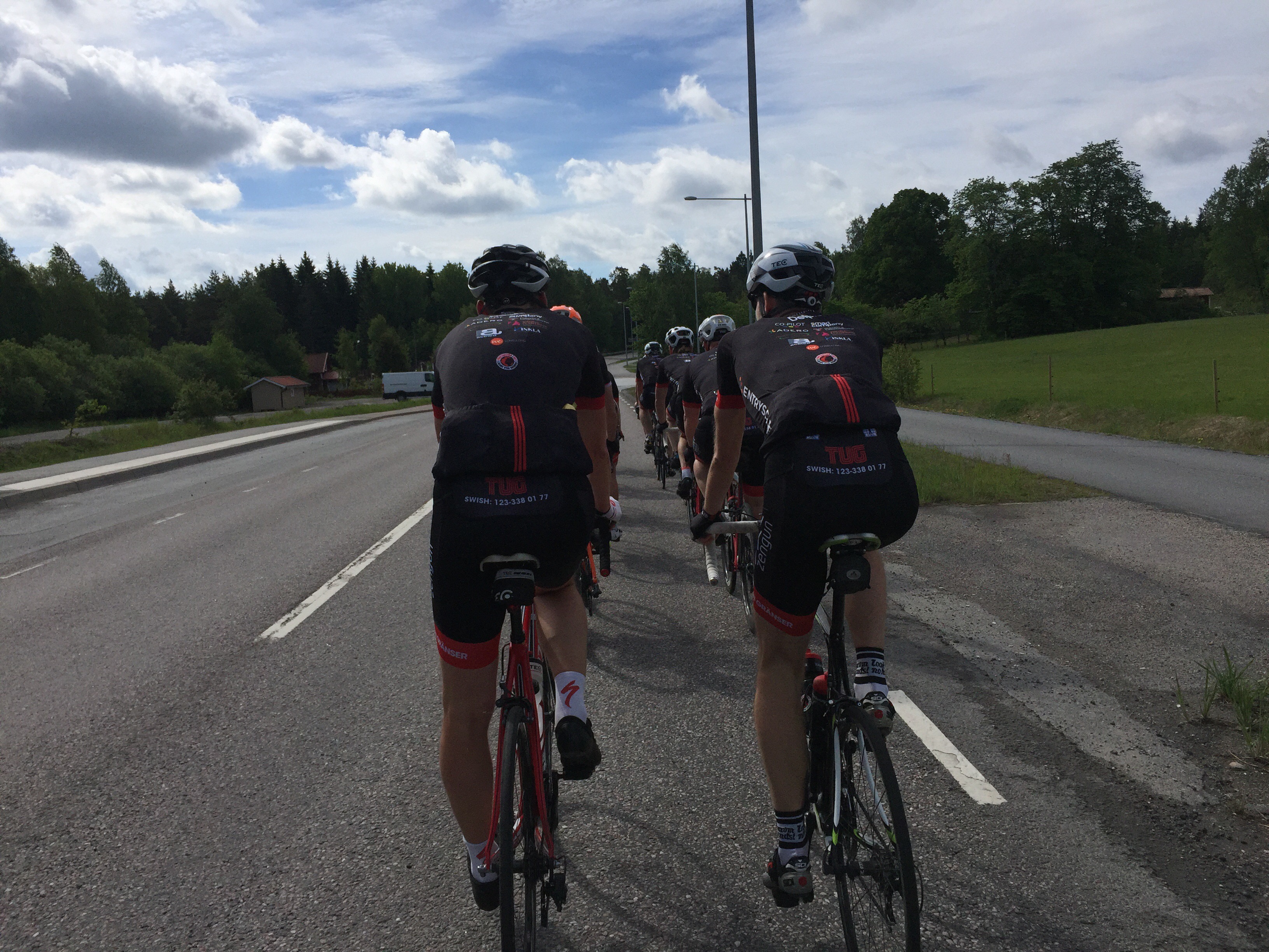 Idag var det samling för oss i Team Utan Gränsers SUB11-grupp kl 9 i Hammaby Sjöstad. Som vanligt körde vår kapten Johan Lilja lite regler innan vi äntrade cyklarna och trampade iväg. Vi blev en ganska stor grupp idag och vi fick sällskap av lite andra teamkompisar som inte ska cykla Vätternrundan.