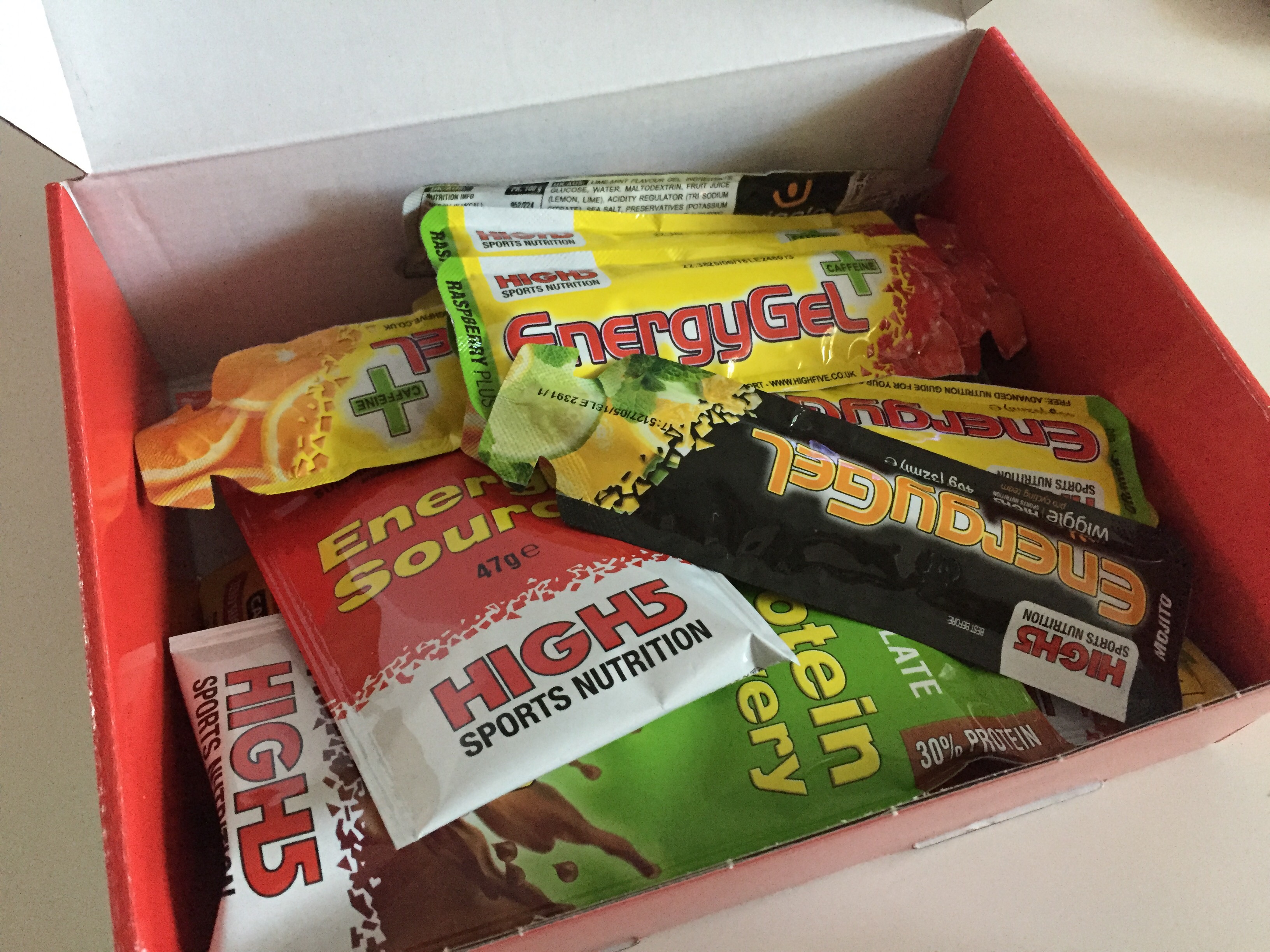 För övrigt har jag idag hämtat ut en låda med energi som jag beställt från Wiggle. Jag brukar köra med produkter från HIGH5. Jag tycker man ska köra med sånt man vet sedan tidigare att kroppen mår bra av. Man vill ju inte få rännskita under loppet för att man provat något nytt som magen kanske inte gillar.