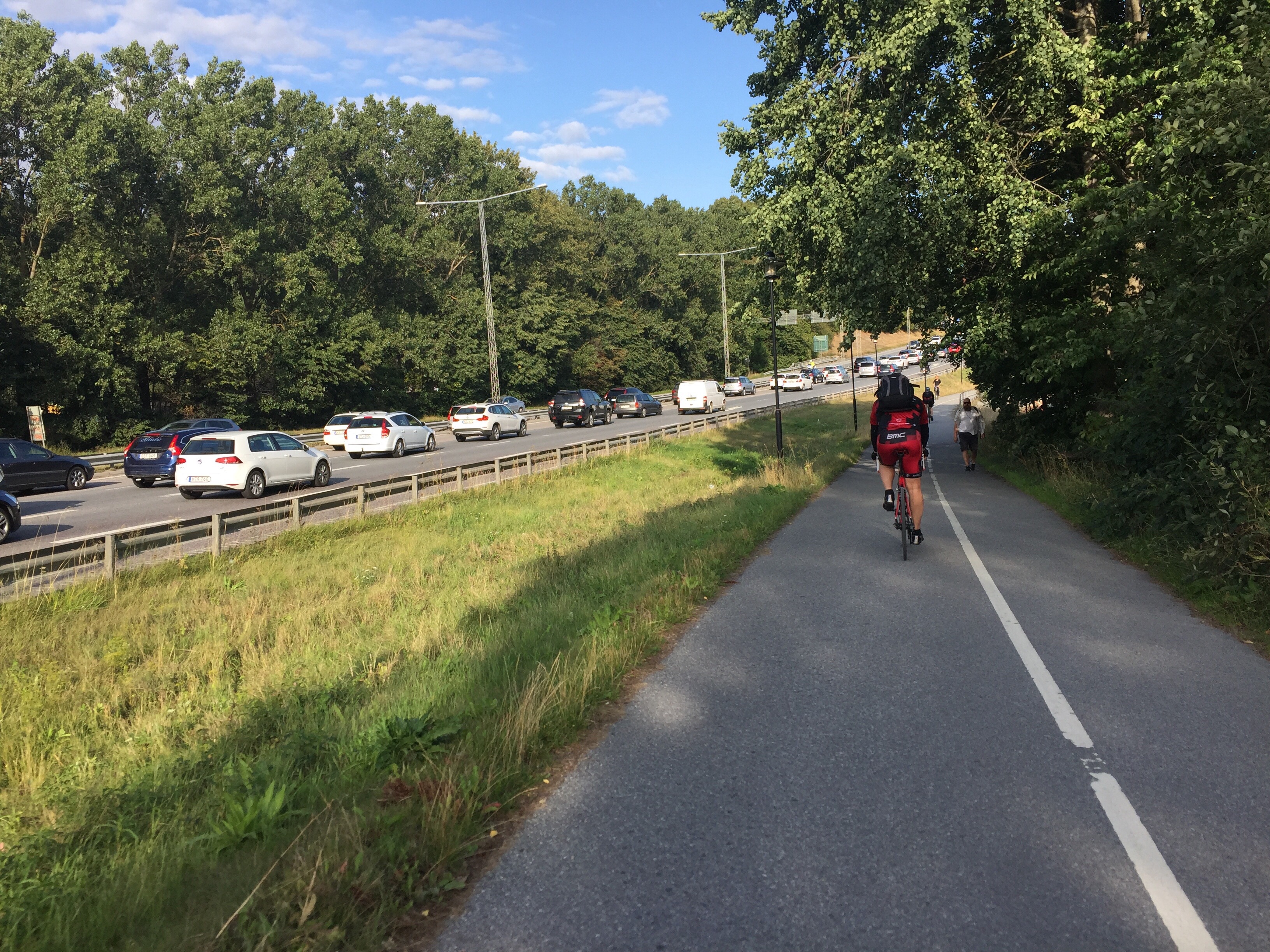 Även på vägen hem är det härligt att cykla förbi de långsamma bilisterna på Bergshamraleden.