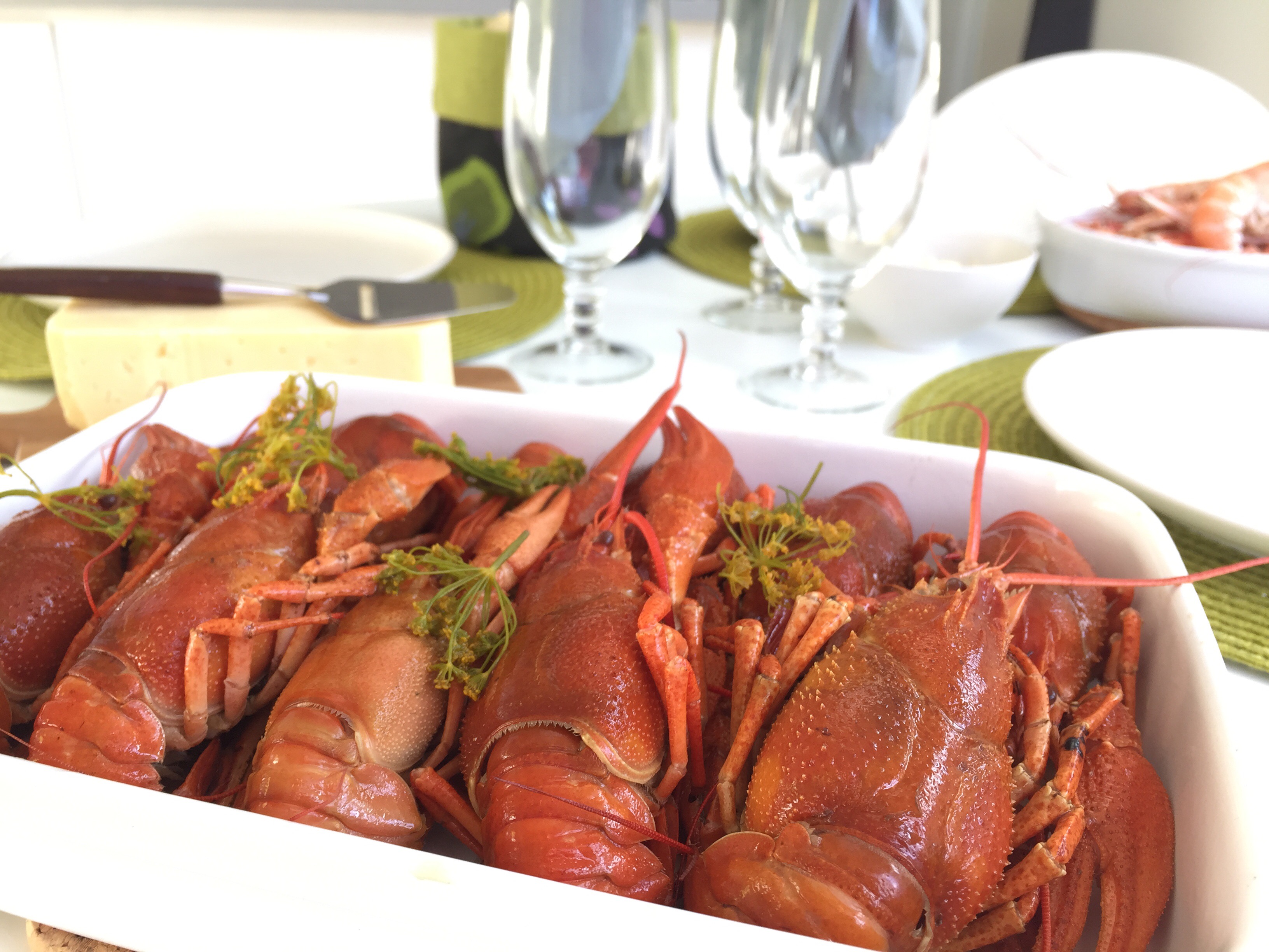 Igår blev det kräftpremiär för mig, då jag hade mamma och lillebror här på middag. Vi körde färska Turkiska jumbokräftor och svenska havskräftor, som båda var riktigt smarriga. Till detta hade vi klassiska tillbehör som Västerbottenpaj, bröd, ost och öl till detta.