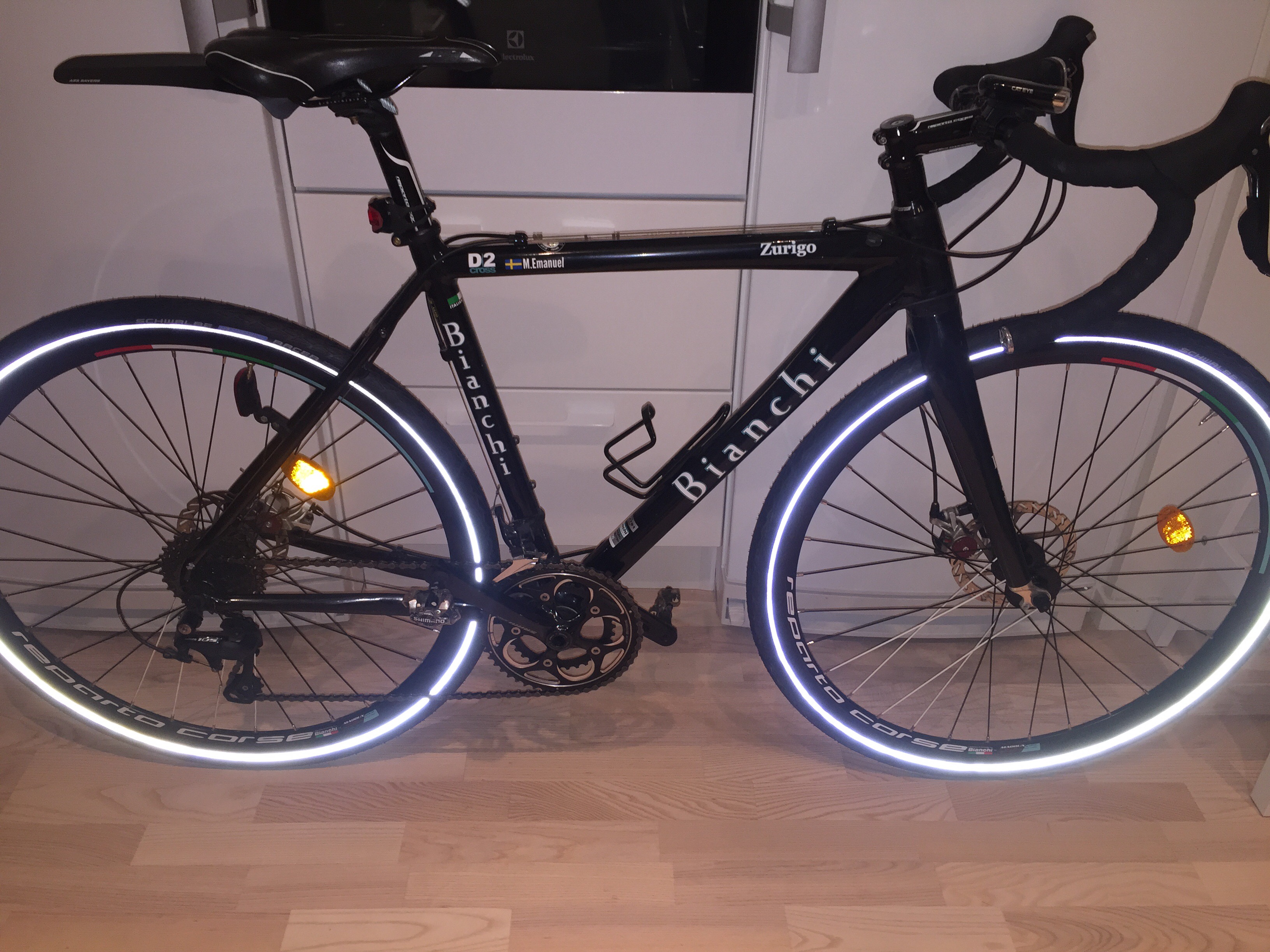Upptäckte att däcken hade reflexsidor och det är ju praktiskt när det ljusnar senare och mörknar tidigare för varje dag.