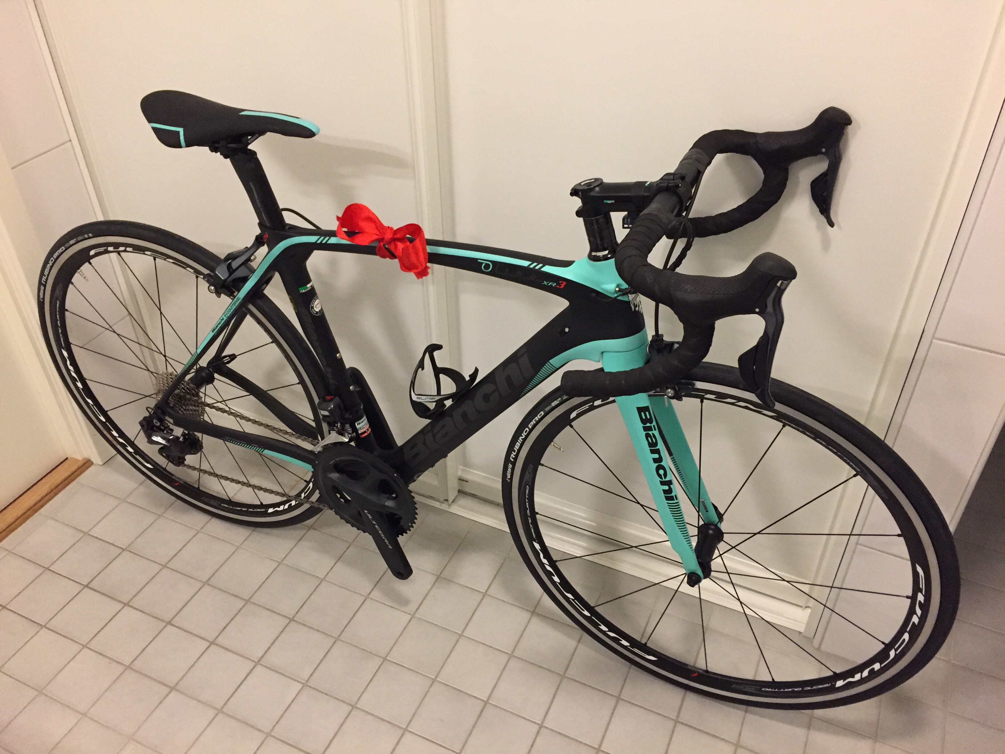 Det blev en Bianchi Oltre XR3 med Ultegra Di2 växlar. Detta blir första gången som jag cyklar med elektriska växlar och jag kommer säkert överösa mina cykelvänner med frågor som redan kör med sånt.