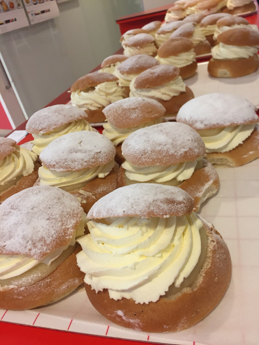 Det blev semmelpremiär efter lunch, då jobbet bjöd på semlor. Det fanns både jättesemlor och små semlor att välja på, men eftersom jag åt sen lunch idag fanns det inga stora kvar, men jag fick tag i en liten. Kändes lite snopet, när jag sett fram emot en stor. När jag kom in på vår avdelning där vi sitter i huset, kom en kollega med en jättesemla och beklagade sig över semlorna var så stora. Jag var snabb och komma med en lösning på hennes problem. Hon fick min lilla semla och jag fick hennes stora. Win-Win 😀