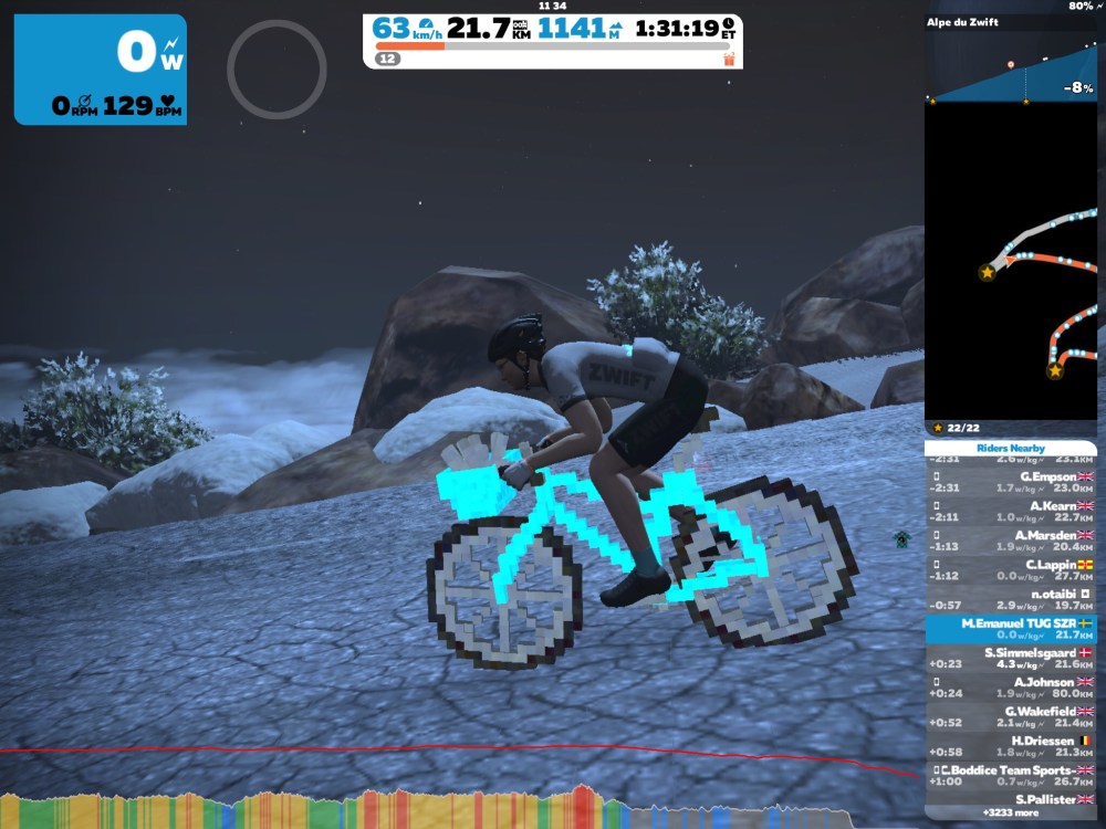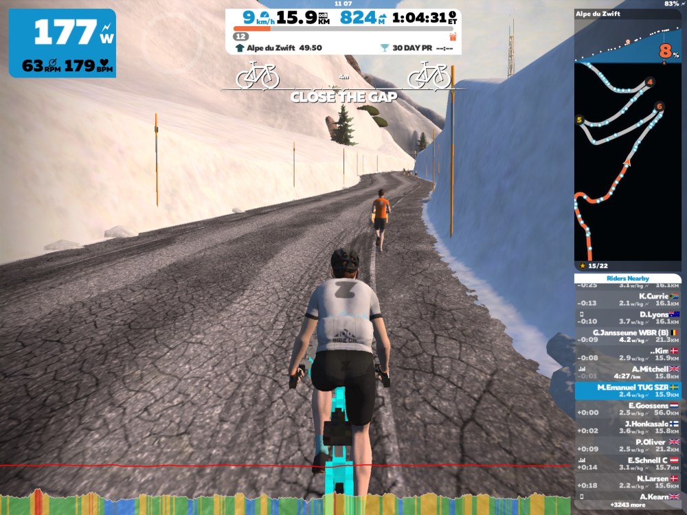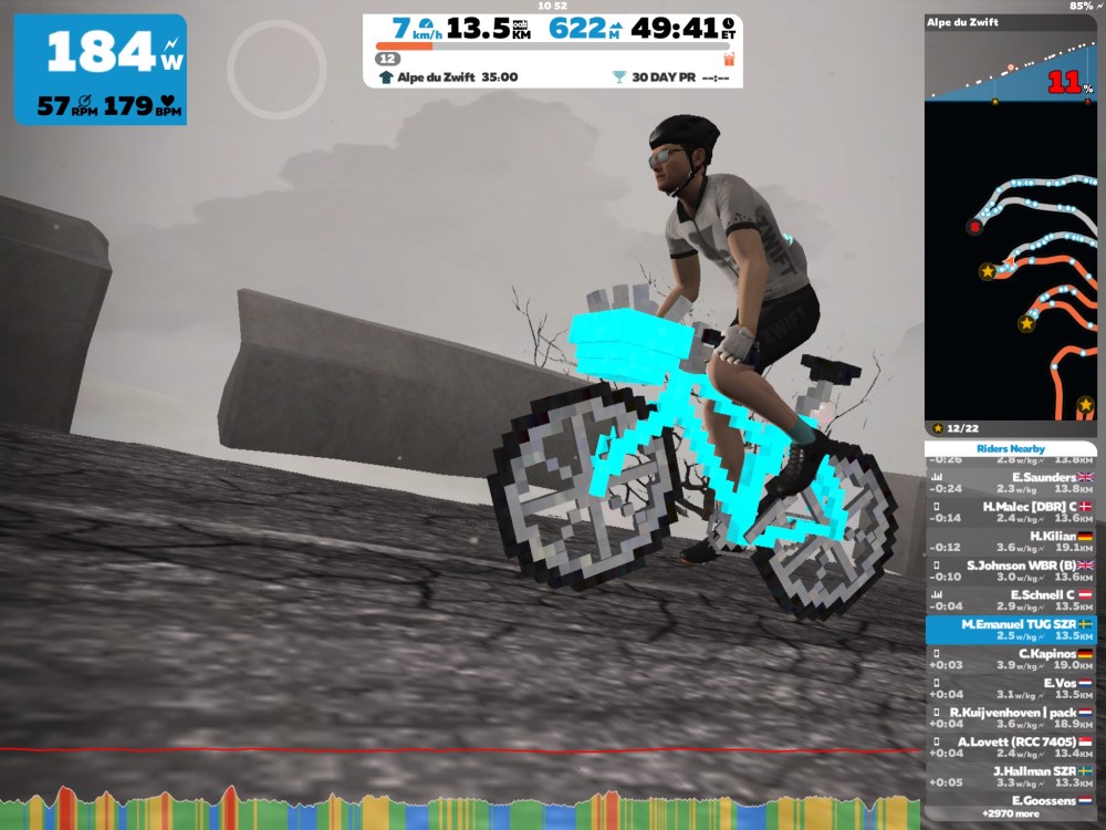 Idag på förmiddagen och fylld med energi från all mumsig påskmat igår, klev jag upp i sadeln. Jag hade förberett mig med extra vattenflaskor, för det går åt mer vätska än vad man tror inne i värmen på en cykeltrainer. Än så länge var det bara min kompis Jörgen, tillika bergsget och en annan kille i TUG som heter Patrik som kört hela Alpe du Zwift av de som kör Zwift i min kompisskara.