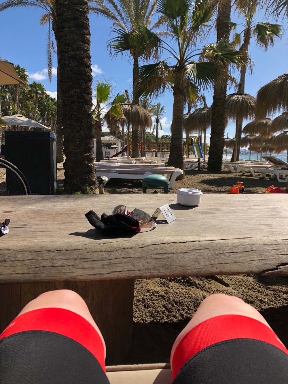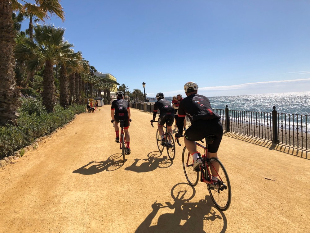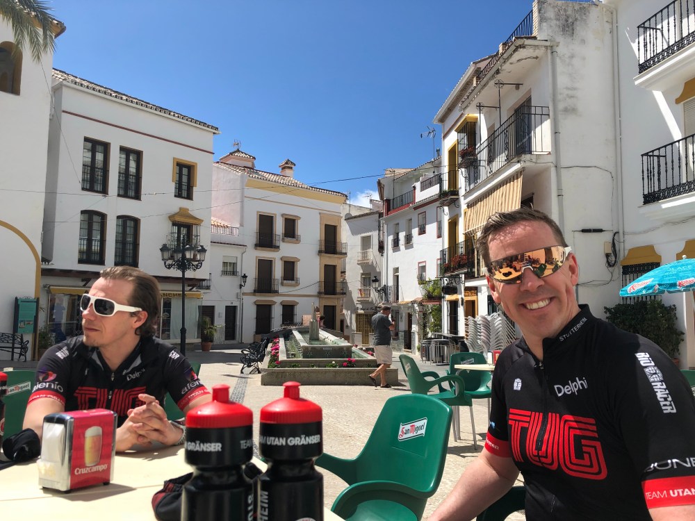 Det blev då att cykla hela vägen ned till Marbella för att därifrån köra en större väg upp mot Ojén. Innan vi åkte från Marbella, stannade vi för en kaffepaus nere vid ett café på stranden. Därefter började vi stigningen mot dagens lunchmål som var Ojén.