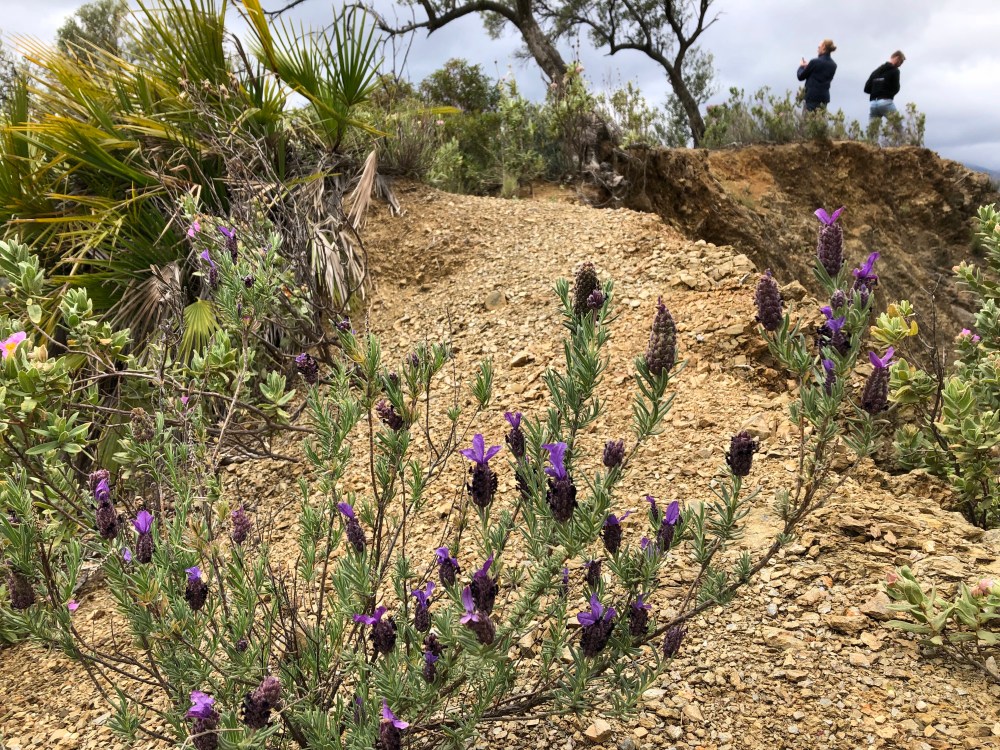 Vi kände oss som riktiga stadsbor när vi iförda platta sneakers klättrade runt bland blommande buskar och vilda olivträd. Det blev en riktigt trevlig och uppfriskande hike på ett par kilometer och på väg tillbaka blev vi lite blöta av det nu antågande regnet.