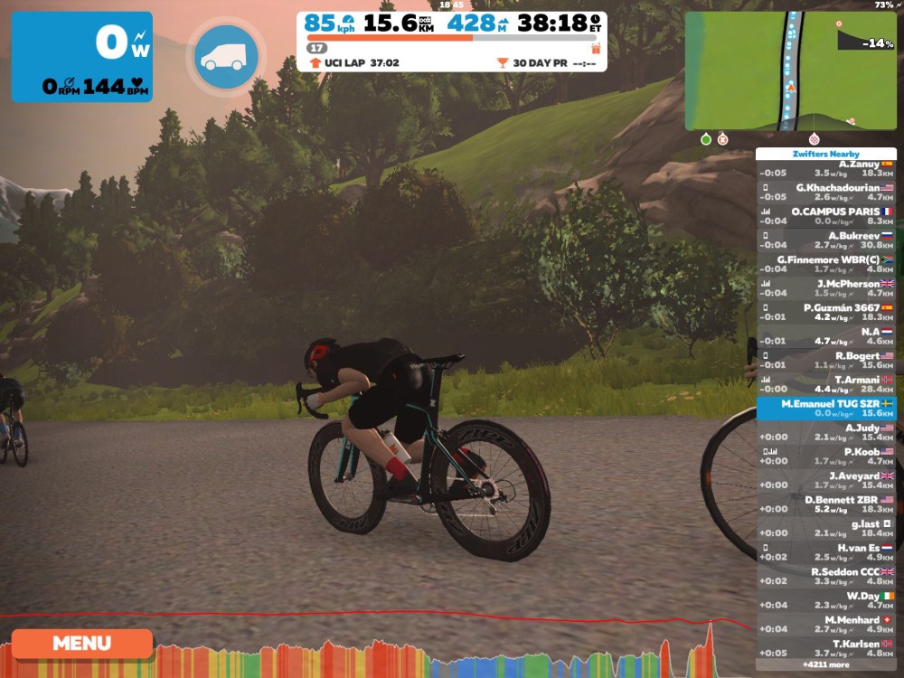 Appropå Zwift så tänkte jag steppa upp träningen lite innan jul och jag bestämde mig igår att att jag ska cykla minst 30 min Zwift varje dag till julafton. Idag körde jag en del av Innsbruckbanan som var rätt backig för att få till lite höjdmeter och lite tyngre cykling.