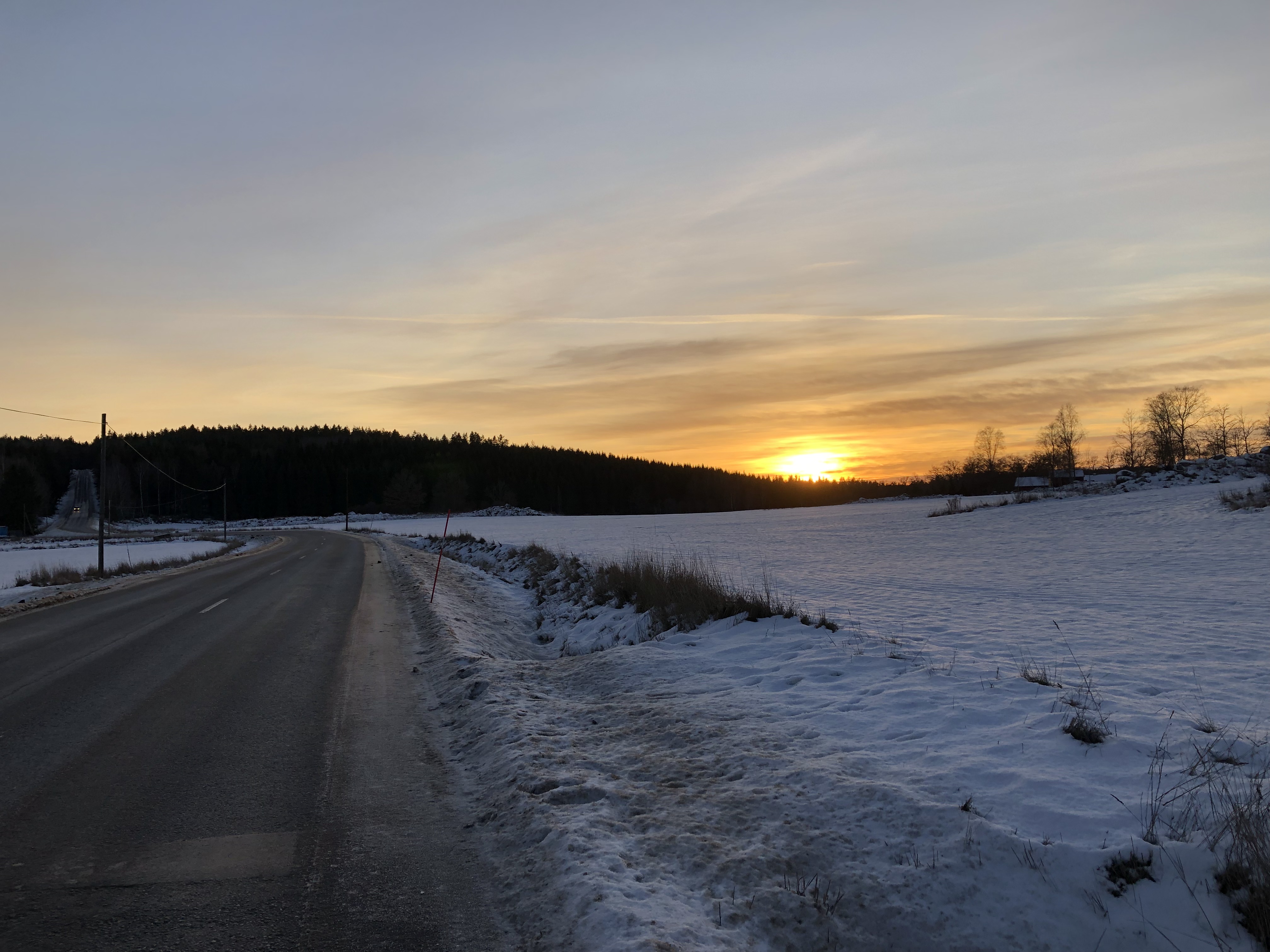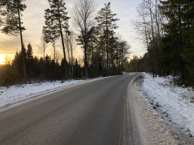 Strax efter kl 12:30 trampade jag iväg i solen. Temperaturen låg väl på någon plusgrad, men eftersom natten varit kall var det vägarna kalla och frusna fortfarande. Det är dock inget som skrämmer mig som har dubbdäck på cyclocrossen.