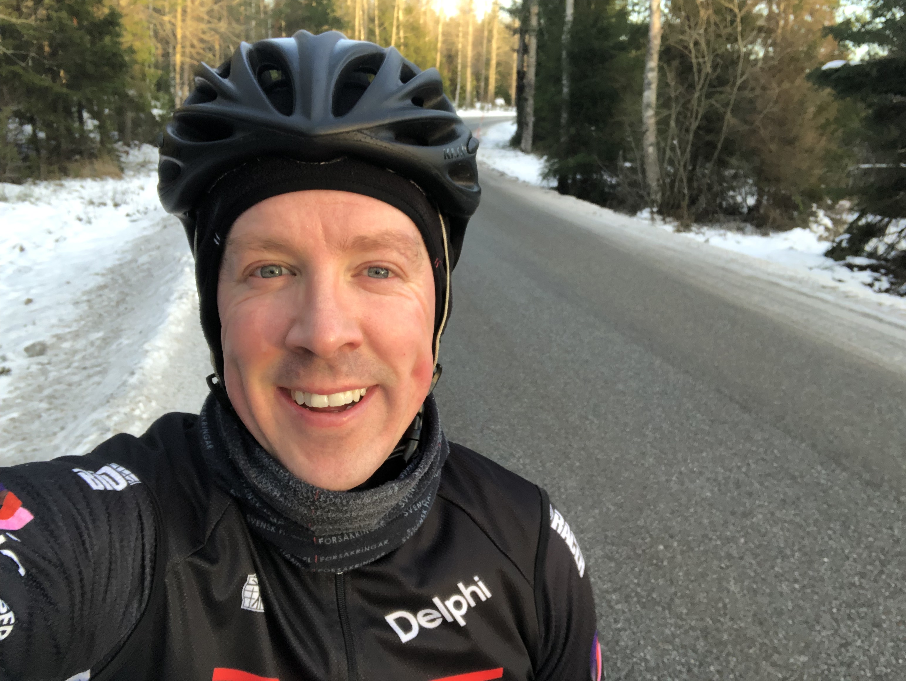 När man blivit en inbiten inomhuscyklist med hjälp av Zwift så tar det lite emot att dra på sig lager på lager med kläder. Men när man väl sitter där och trampar och solen skiner så är det riktigt härligt. Jag kunde känna av gårdagens Zwiftpass uppför Alpe Du Zwift i benen. Igår lyckades jag erövra den prickiga bergatröjan för andra gången för att jag var snabbast uppför berget av alla som cyklade på banan just då. Trots det så var nog rätt pigg i benen ändå.