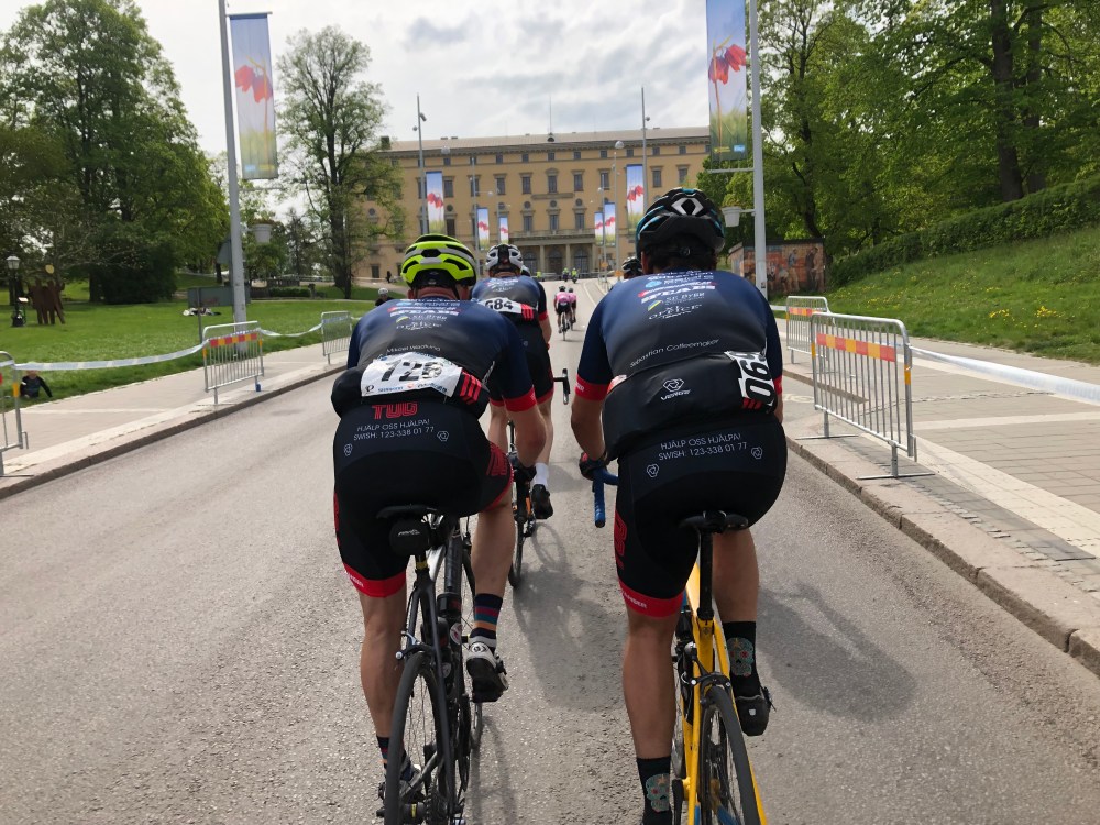Klockan 8:36 gick vår start och det var en hel del omdragningar av banan genom stan innan vi kom ut på de små härliga landsvägarna. Vi hade dock en motorcykel med blinkande lampor som låg framför oss och guidade oss. Det brukar grupperna ha i början, men i år följde samma motorcykel med oss under hela loppet. Det upplevde vi att det hade en lugnande inverkan på bilisterna som ibland stannade när vi mötte dem och tog det lugnt när vi blev omkörda.