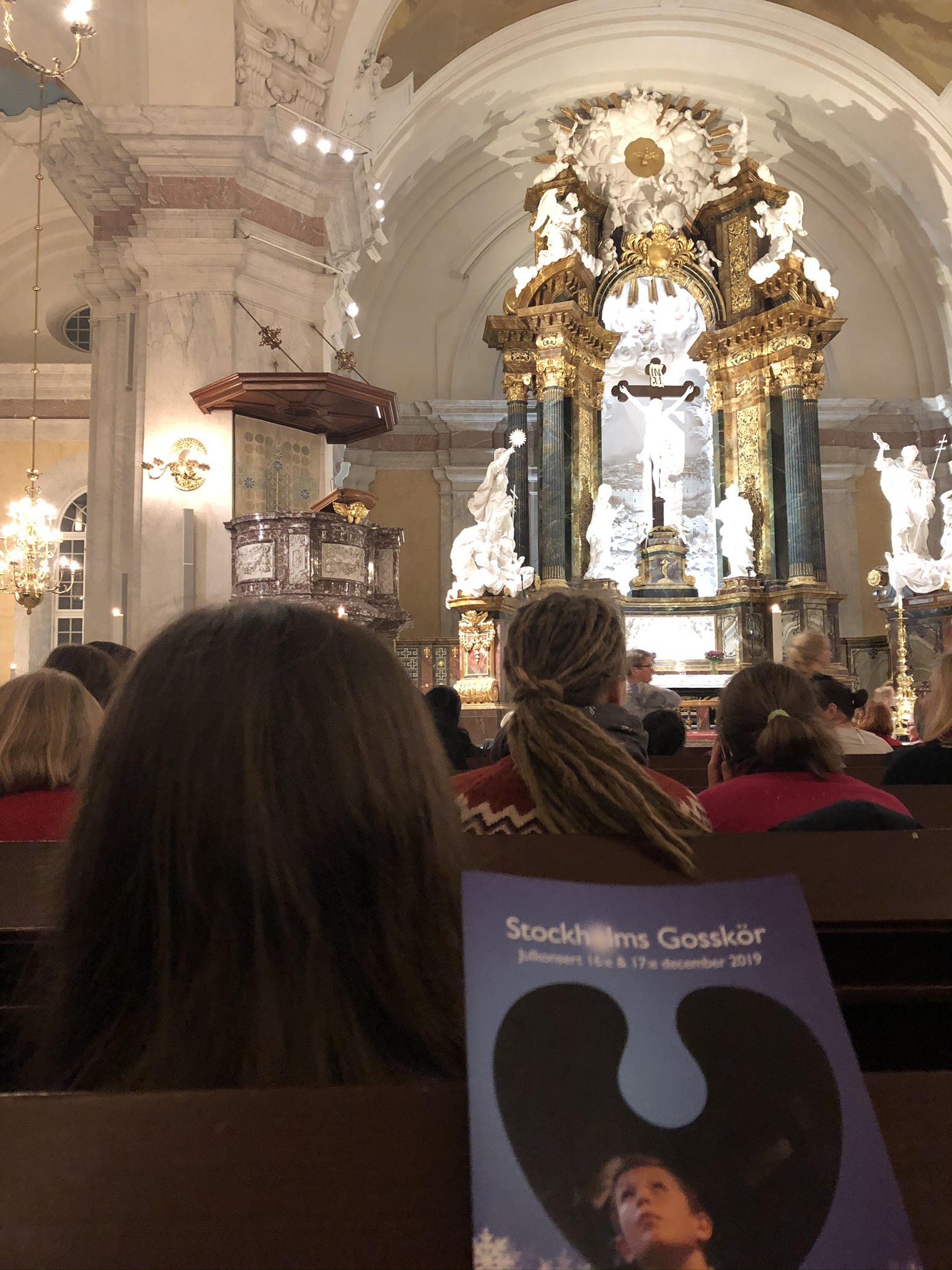 Igår var jag på en julkonsert i vackra Gustav Vasa kyrka, där min kompis son som är med i Stockholms Gosskör skulle uppträda.