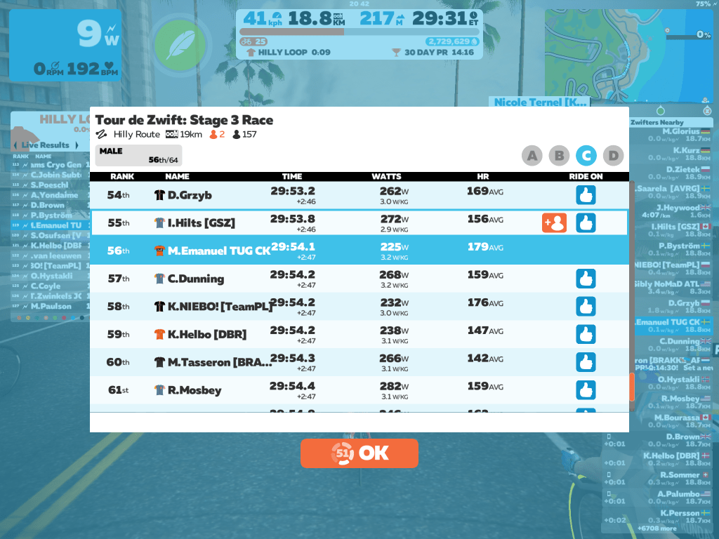 Whoaaa… ikväll var det dags för tredje etappen i Tour de Zwift och jag var anmäld i grupp C kl 20:12 tillsammans med 100+ personer till. Jag älskar verkligen att tävla i Zwift, vet inte varför. Men det kan bero på att jag känner mig stark just nu, så det är väl bara att njuta 😀