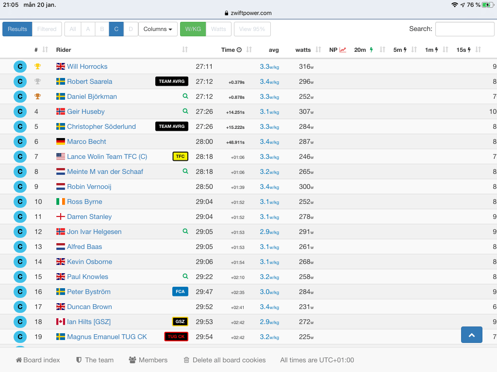Jag visste inte riktigt vilken plats jag kom på när jag korsat mållinjen för jag var helt tagen av sista spurten. Men i totalen där ingen var bortsållad, så kom jag på en 56:e plats. Men i den officiella resultatlistan blev det en 19:e plats och för första gången kunde jag se mig utan att behöva scrolla på paddan i resultatet 🤩