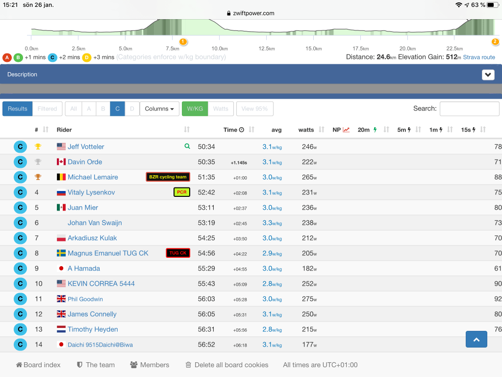 Jag kämpade på och höll min placering. Målet fick bli inte komma i mål på en placering sämre än 30 i totalen i C innan Zwift sållat bort de som brukar diskas av olika anledningar. Jag klarade det och kom in på en 28:e plats! Och det skojigaste av allt var att det blev en 8:e plats i den officiella resultatlistan ✌🏼