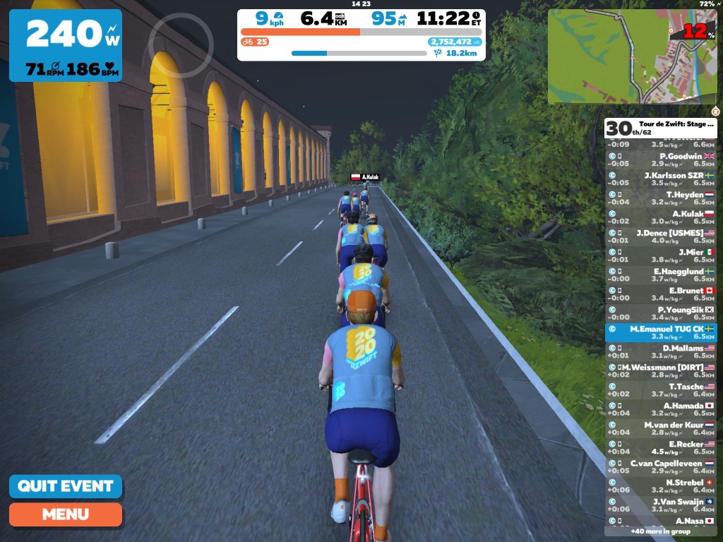 Smått ovetande om vilken bana det var i Tour de Zwift, etapp 4 så anmälde jag mig lite hastigt till racet kl 14:10. Laddade energi i form av en smörgås och en semla 😃 Fyllde på flaskan, bytte om och hoppade glatt upp på cykeln.