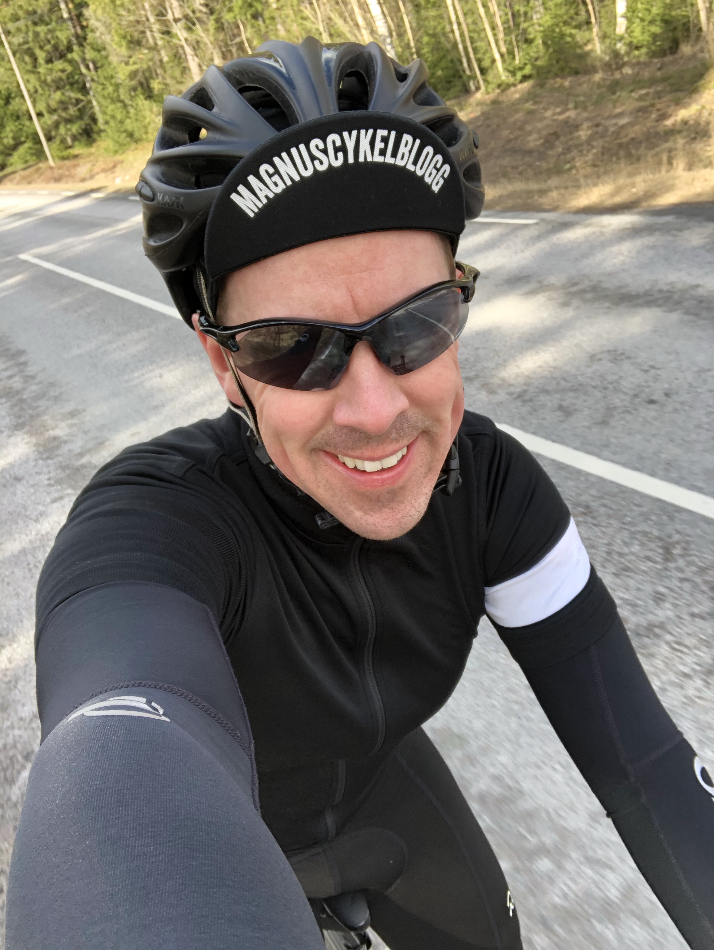På eftermiddagen hade det börjat torka upp, men nu var det rejält blåsigt istället. Trots detta var det ändå rätt varmt i luften. Och är det tvåsiffrigt, brukar jag köra i korta cykelbyxor. Däremot blev det armvärmare och handskar med långa fingrar.