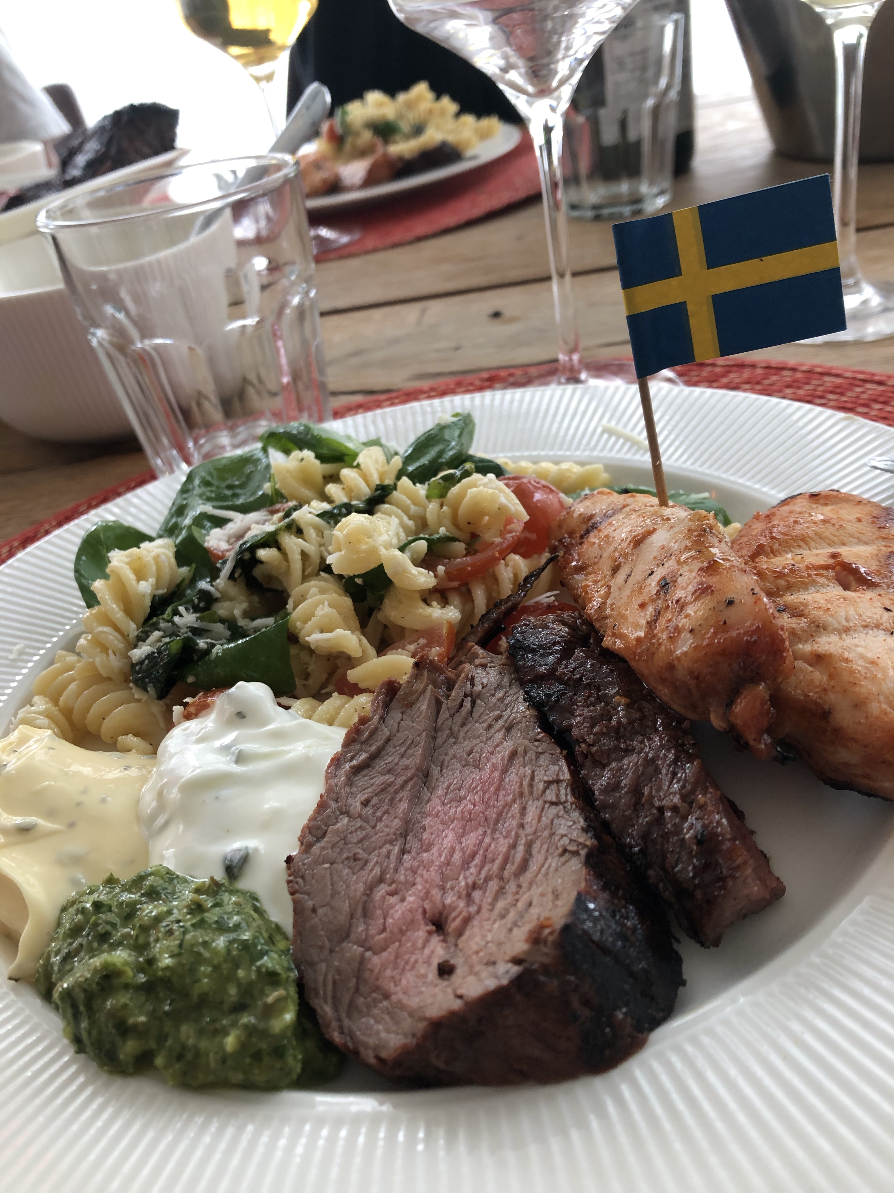 Igår tog jag elcykeln ned till Täby för att äta middag med två kompisar på självaste nationaldagen. På vägen dit överraskades jag av ett ösregn, men som tur var hade jag packat både regnbyxor och regnjacka som jag drog jag på mig och kunde sedan fortsätta och komma fram hyfsat torr.