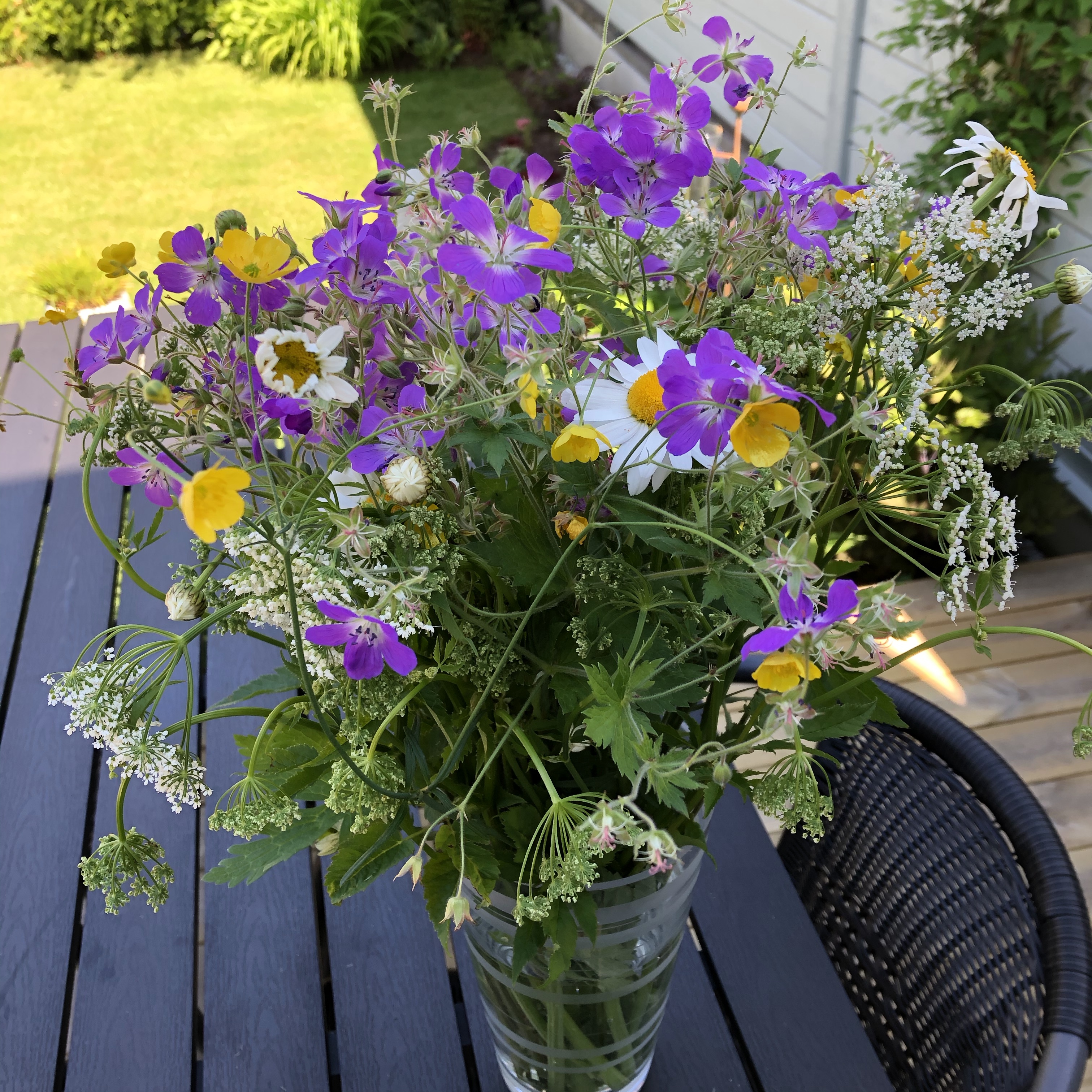 Jag har idag hunnit med en midsommarcykeltur runt den lokala sjön efter frukost. Och på vägen hem passade jag på att plocka med mig lite ängsblommor till värdparet som jag ska till.