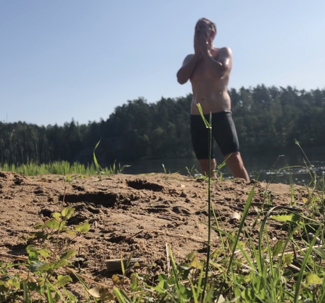 Vattnet låg spegelblankt och inte en människa syntes till. Bestämde mig då för att att ta ett provdopp. Det fina när man cyklar är ju att man har ju typ badbyxor på sig, fast med padding där bak 😄