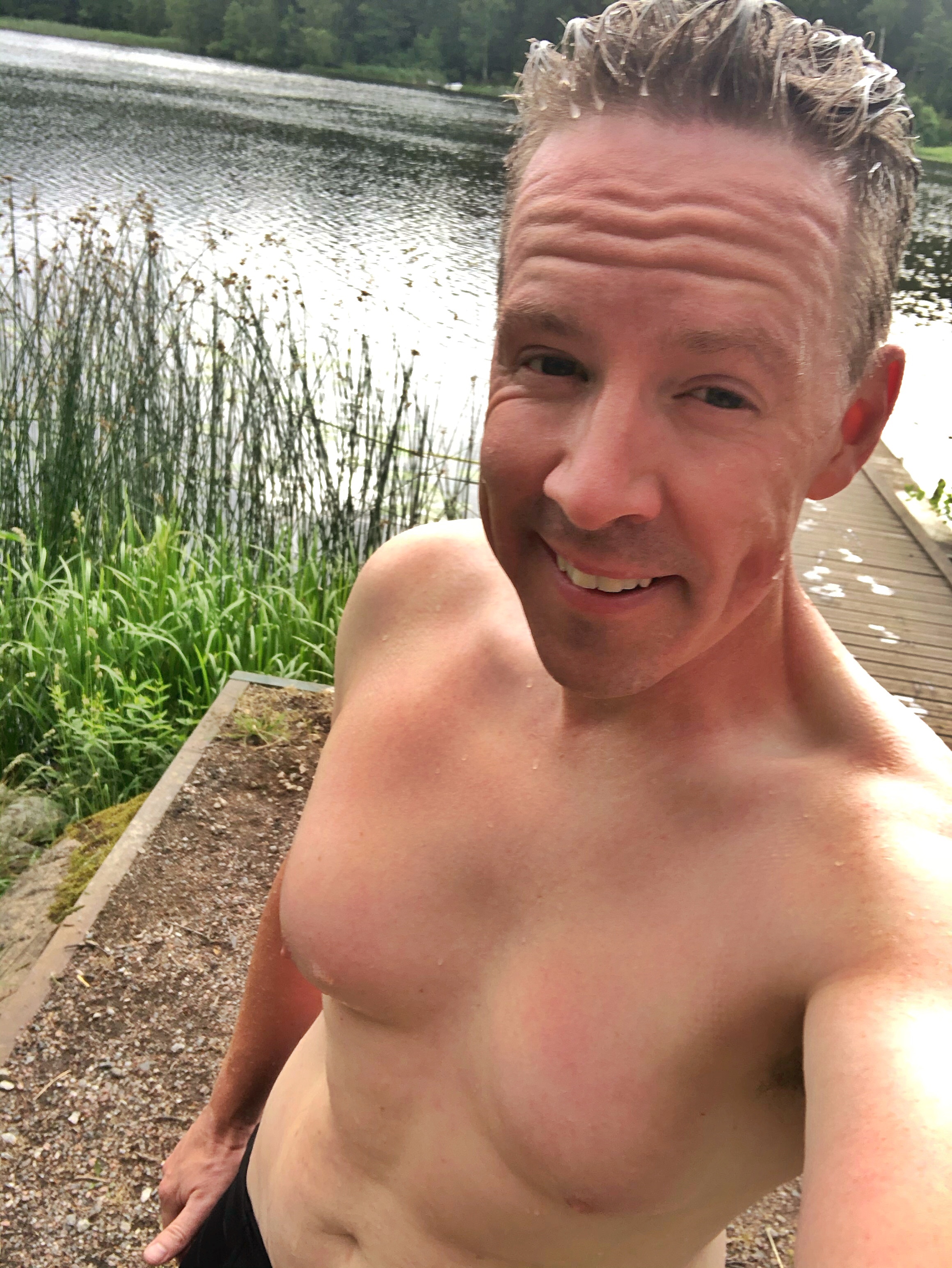 Som vanligt stannade jag till vid den lilla badplatsen som jag börjat göra lite då och då på morgonrundorna. Jag som egentligen inte är någon badkille börjar verkligen uppskatta det uppiggande doppet i slutet på rundan. Jag känner jag mig som en ny människa efter det korta men uppfriskande doppet.