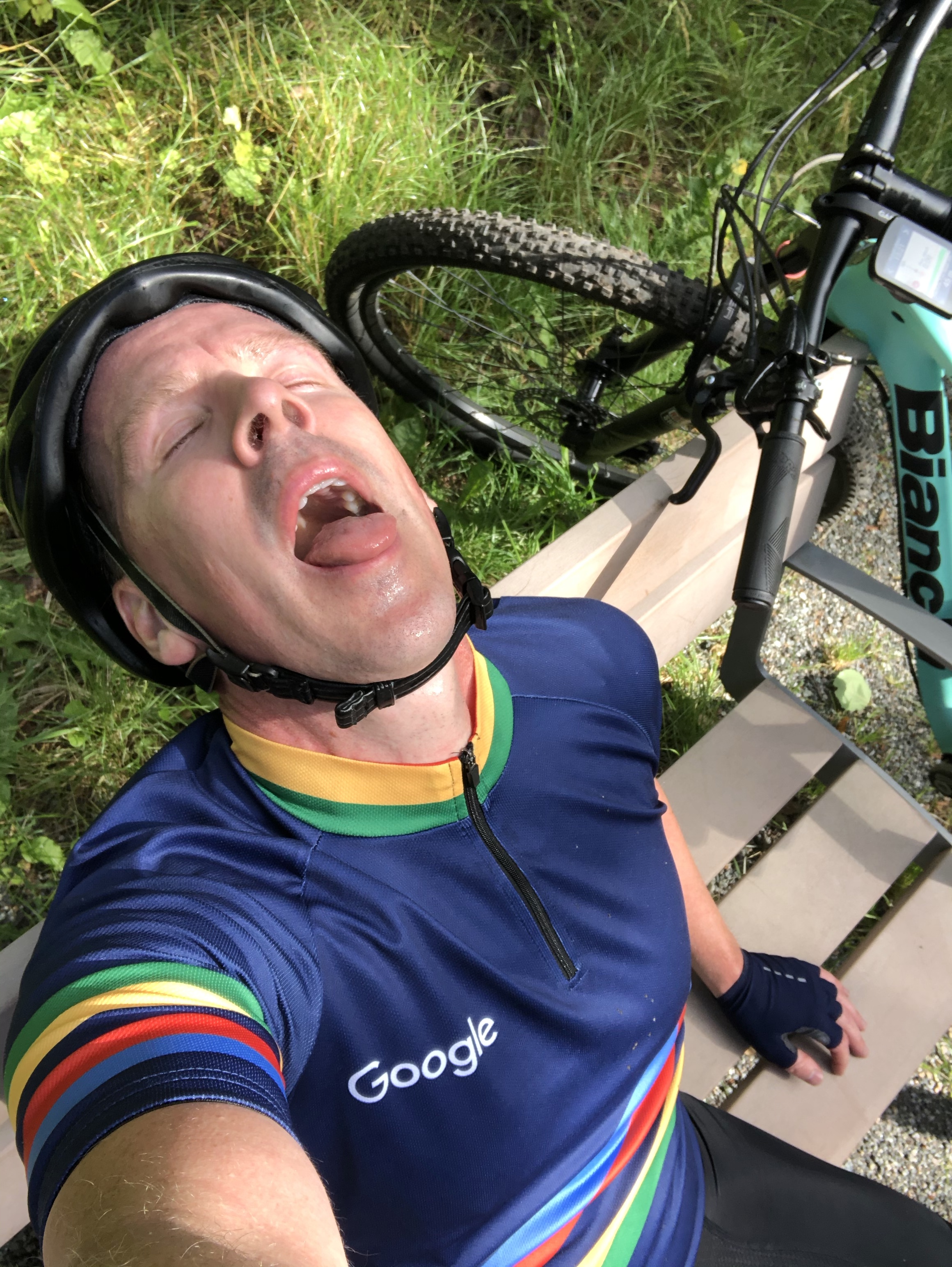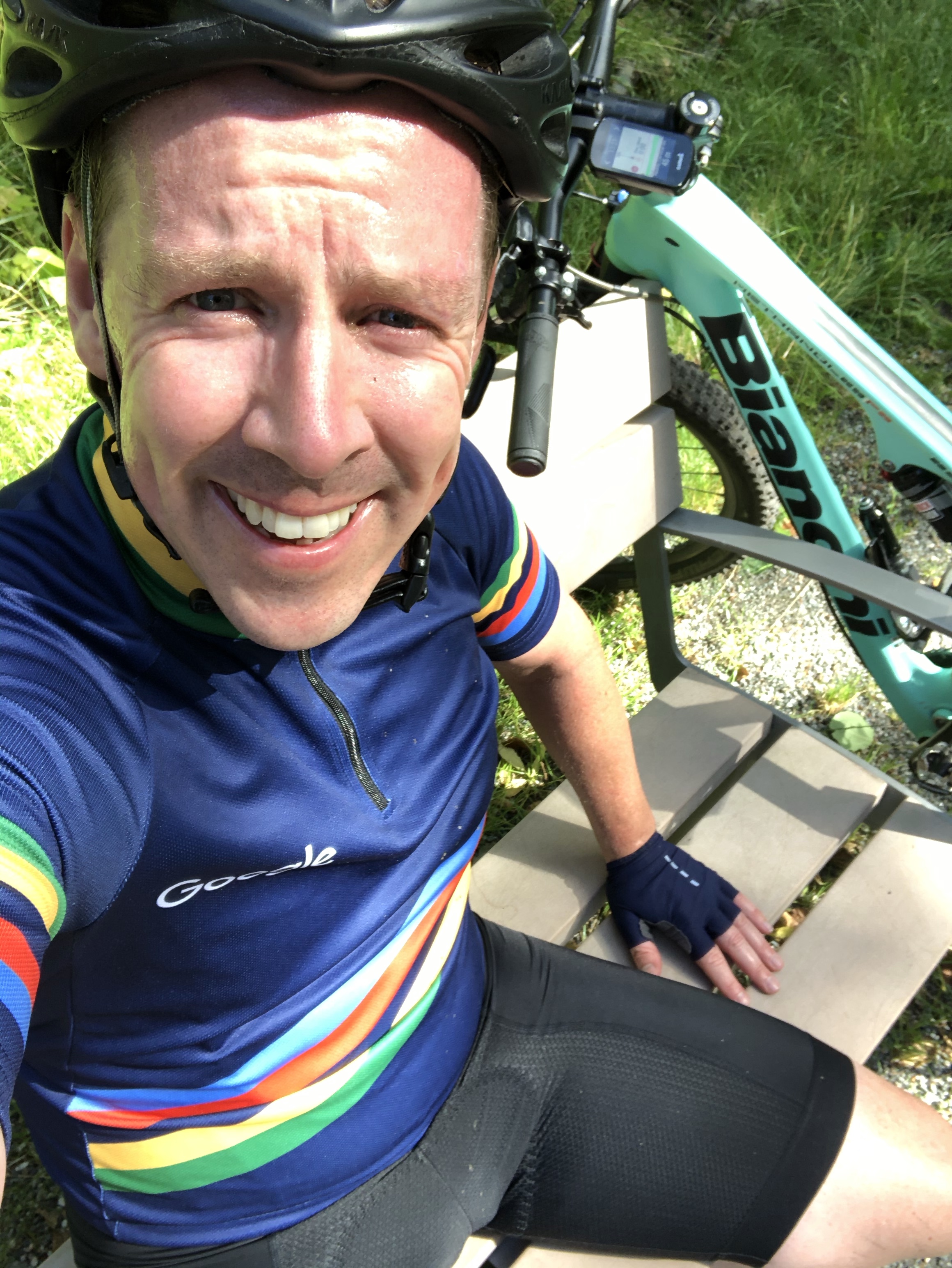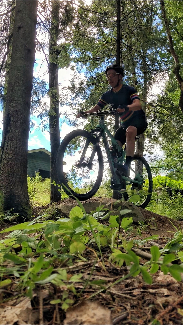 Vid lunchtid idag körde jag två varv på Hacksta MTb-bana och trots sina 3,4 km kan man verkligen köra slut på sig själv där. Efter 1 varv sprutar svetten om en och efter 2 varv är man sjöblöt. Jag tycker det är så härligt att ha denna bana så nära mig.