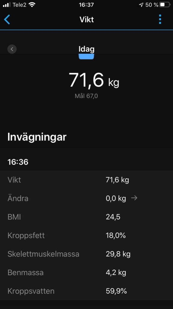 Det finns också tester och prylar som kan hjälpa dig att hålla koll på din hälsa. Och mitt senaste tillskott för att hålla koll på min vikt är att jag införskaffat mig vågen, Garmin Index Smart Scale. Jag gillar Garmin Connect, som är den app där all data samlas från ens träningspass som man gör med t.ex. pulsklockan och cykeldatorn som jag har från Garmin.