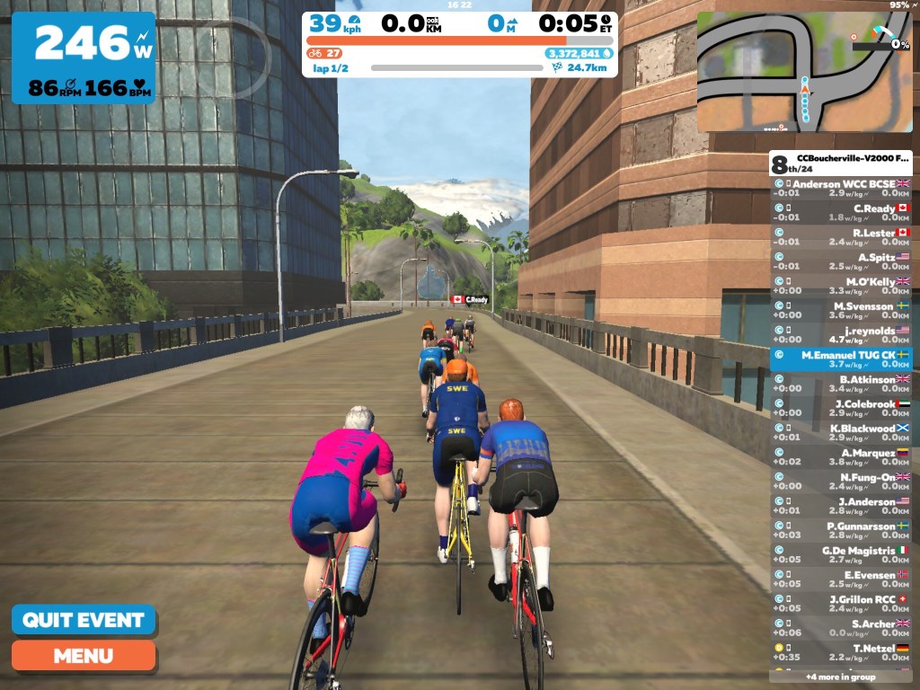 Jag anmälde mig till ett race i klass C som var ett hyfsat platt race. Vi var ca 24 personer som kom till start i C-klassen och det blev full vart på en gång. Svetten flödade och pulsen var lite för hög hela racet för att det skulle kännas bekvämt, men jag hade koll på den och det kändes ändå bra i benen och kroppen.