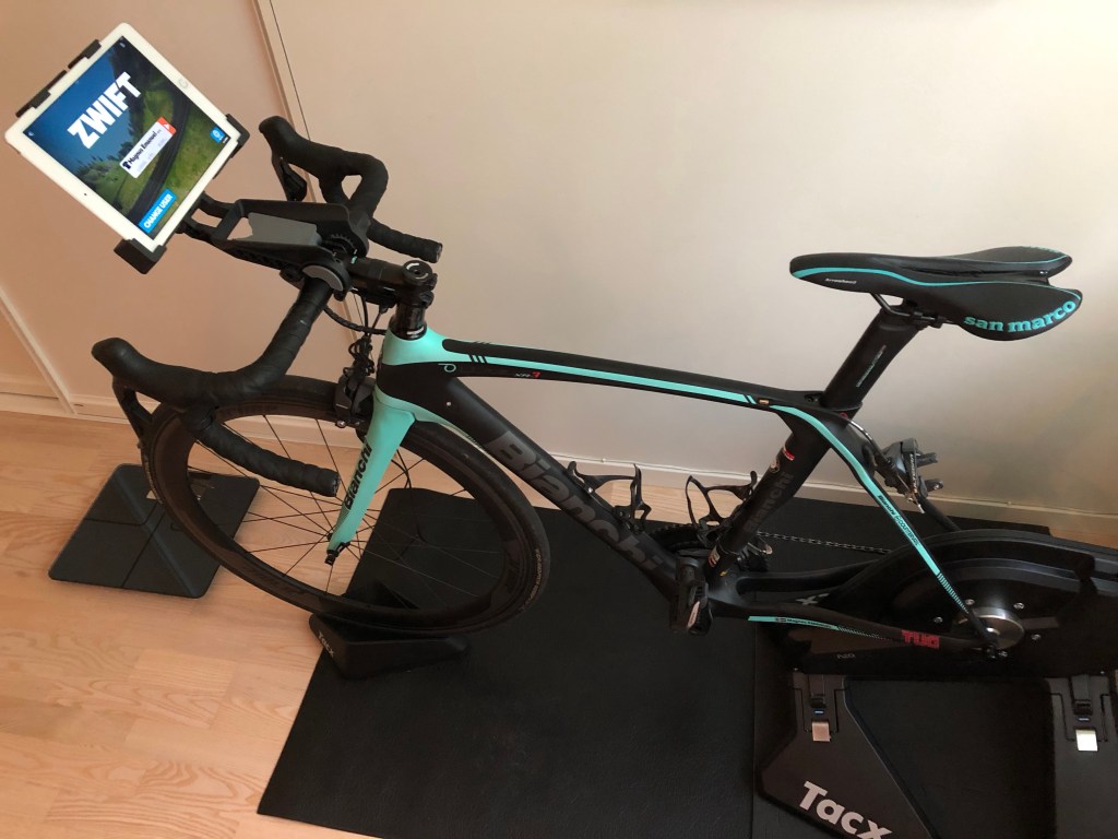 Eftersom den planerade cykelturen runt Stockholm blev inställd igår, så passade jag på att ta fram min cykeltrainer och montera racern på den. Så nu startar jag officiellt höstens innesäsong. Jag kommer givetvis att cykla en hel del ute med någon av mina andra cyklar, men racern får nog se sig vinterplacerad i träningsgrottan.
