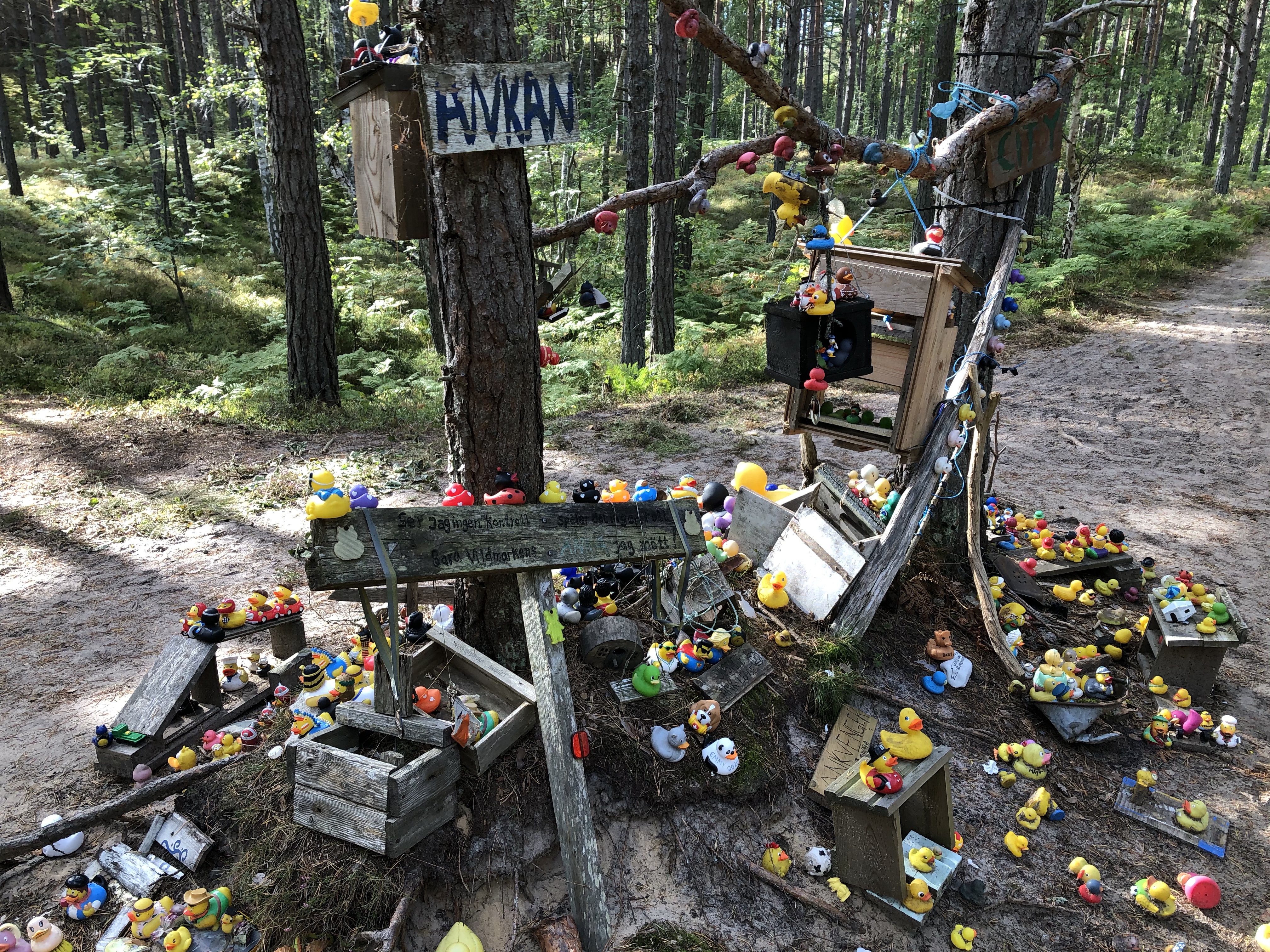 På slutet av rundan passerad vi en lite udda konstinstallation med massor av gummiankor.