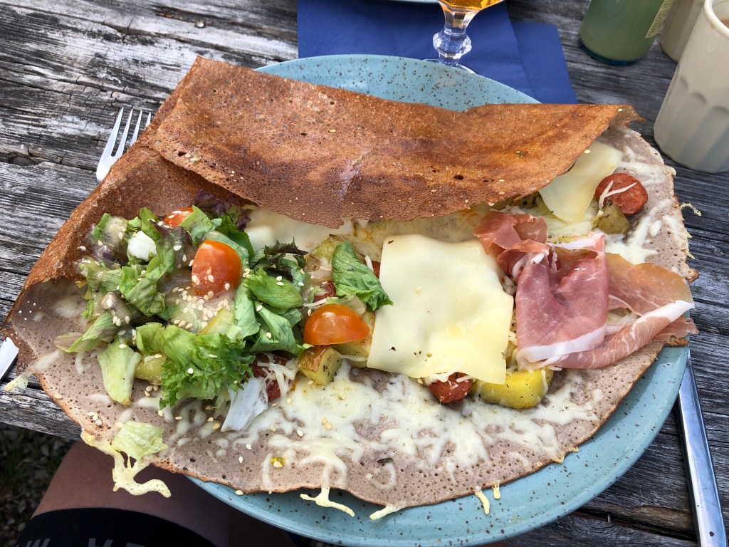 Dagens runda avslutades med sedvanlig lunch på Kutens bensin och Crêperie Tati. Idag blev det en ljuvligt välsmakande Galette med serranoskinka, chorizo, Emmentaler, potatis och diverse grönsaker.