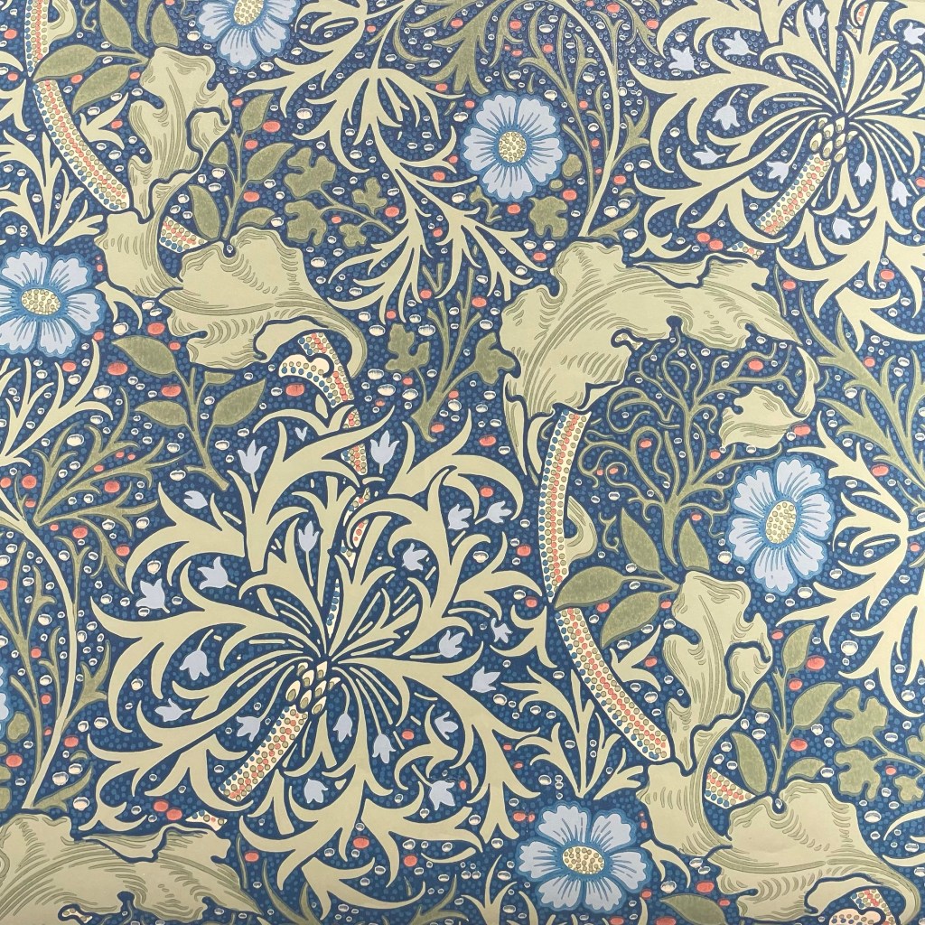 Jag blev otroligt förtjust i en tapet från Morris & Co som heter Seeweed, vars mönster skapades 1901. Den har jag nu beställt och det kommer bli en härlig mönsterchock i mitt kök.