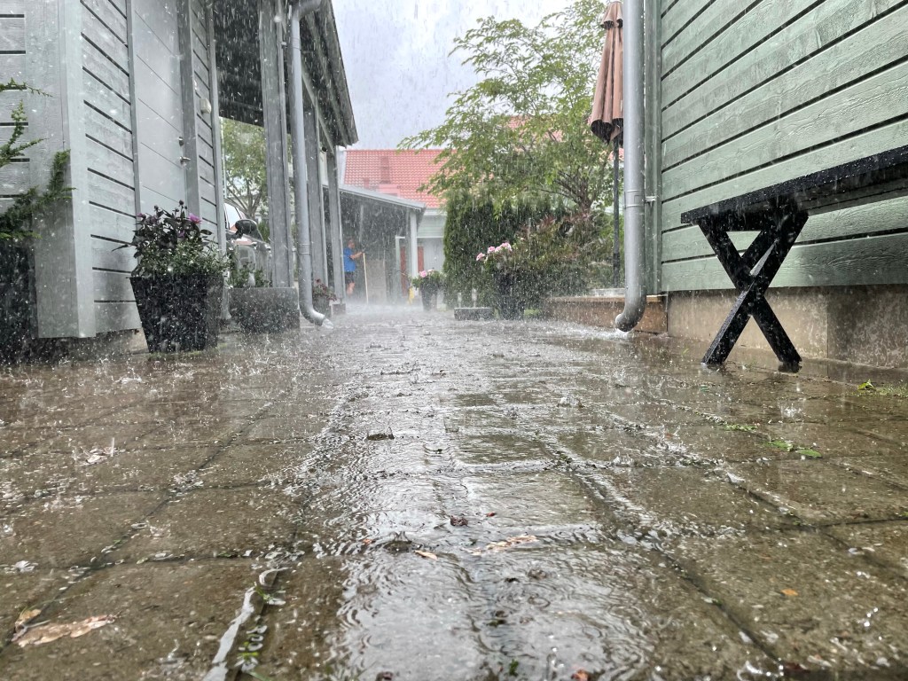 Åskan som hördes på avstånd rullade rätt snabbt in över oss och ett härligt oväntat sommaråskväder släppte loss sina krafter. Inga väderprognoser sa att det skulle komma något regn, men åhhhh så välkommet det var.