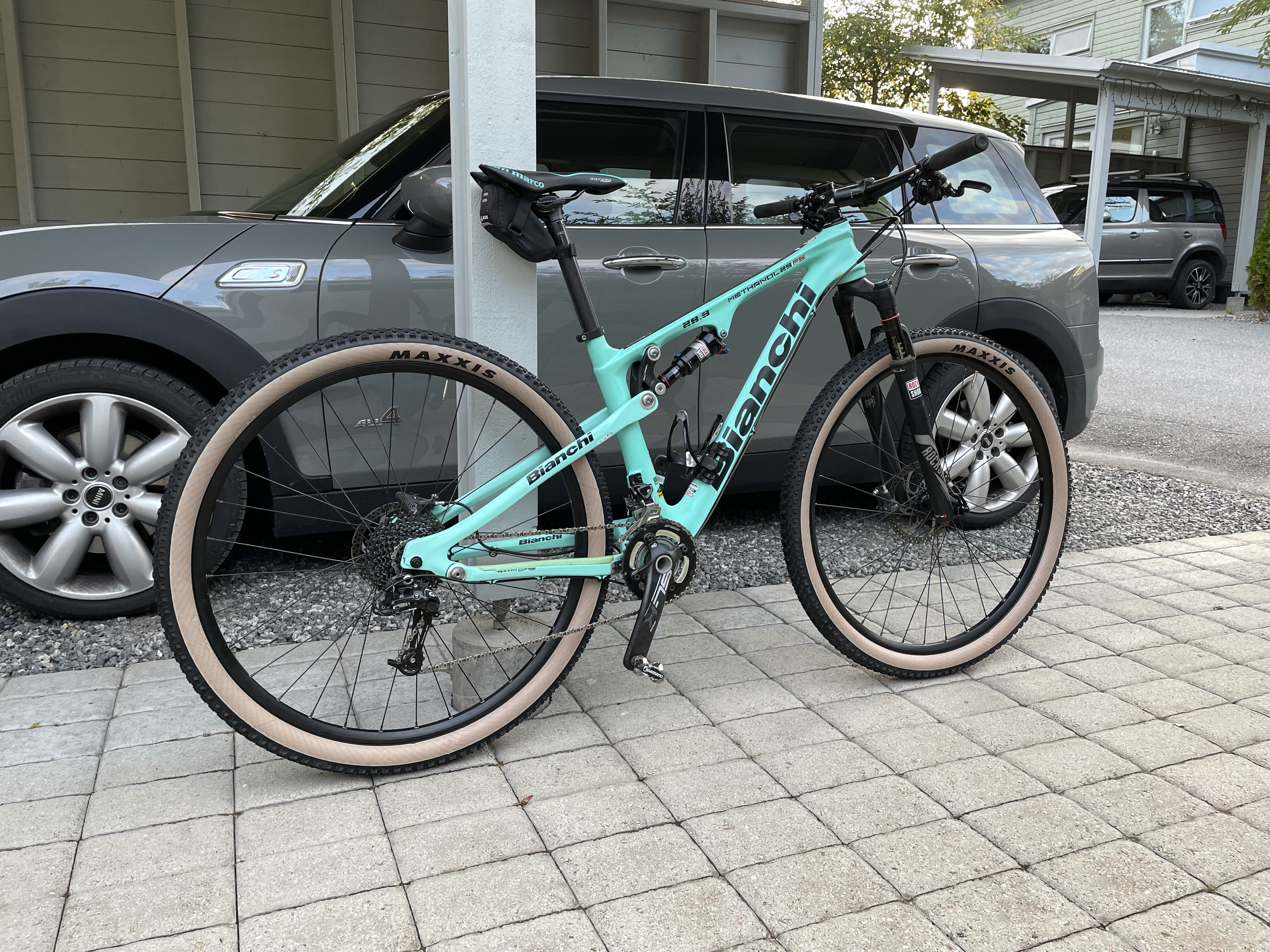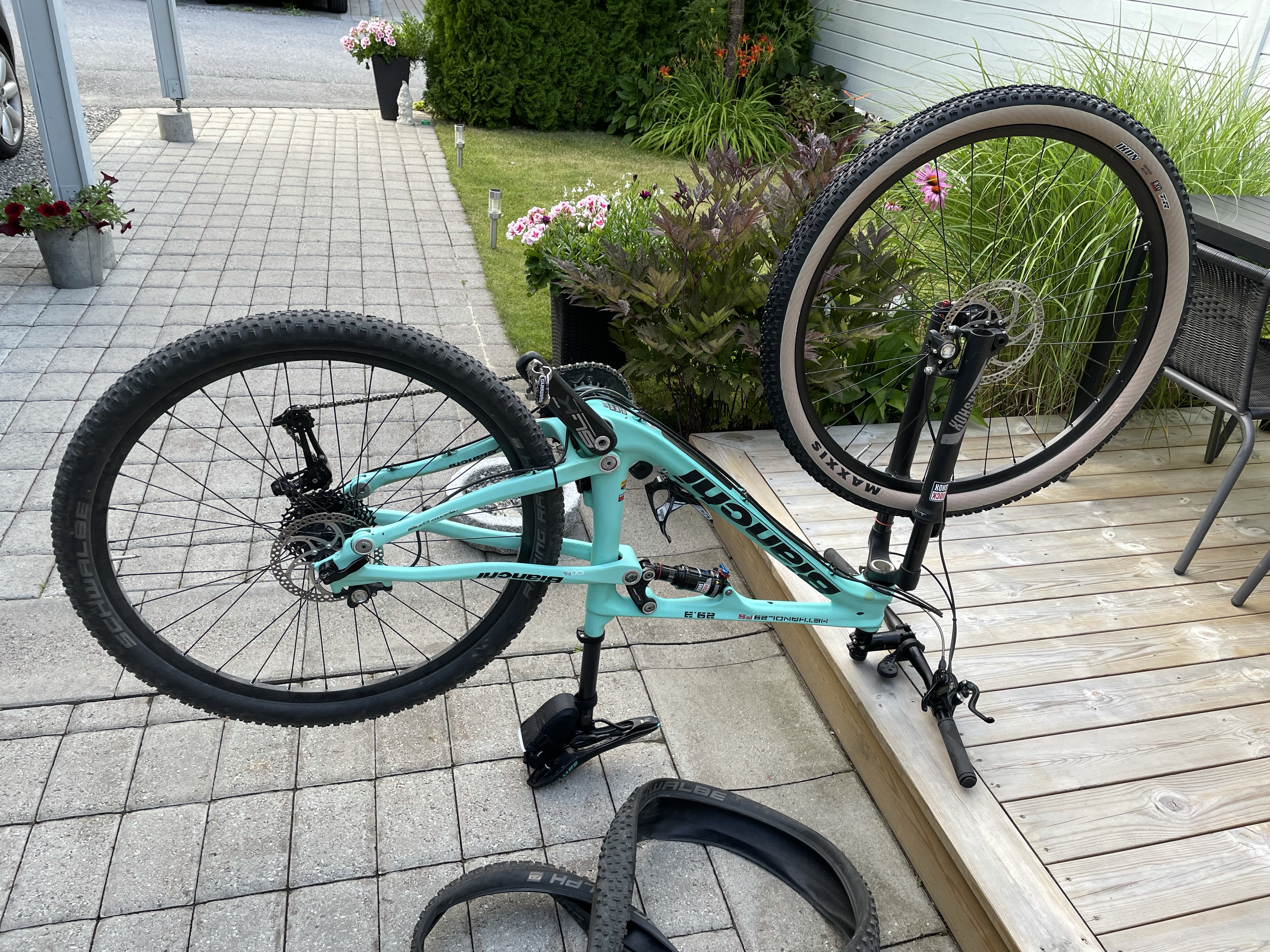 När det nu var dags att byta däck, då mönstret på min gamla däck börjat bli lite tunt, slog jag till på ett par däck med ljusa däckssidor från Maxxis. Det är ett märke jag aldrig testat förut, men nu när de sitter på tycker jag det känns som en helt ny cykel. En snygg cykel, blev plötsligt ännu snyggare. Hoppas nu däcken känns lika bra att cykla med också.