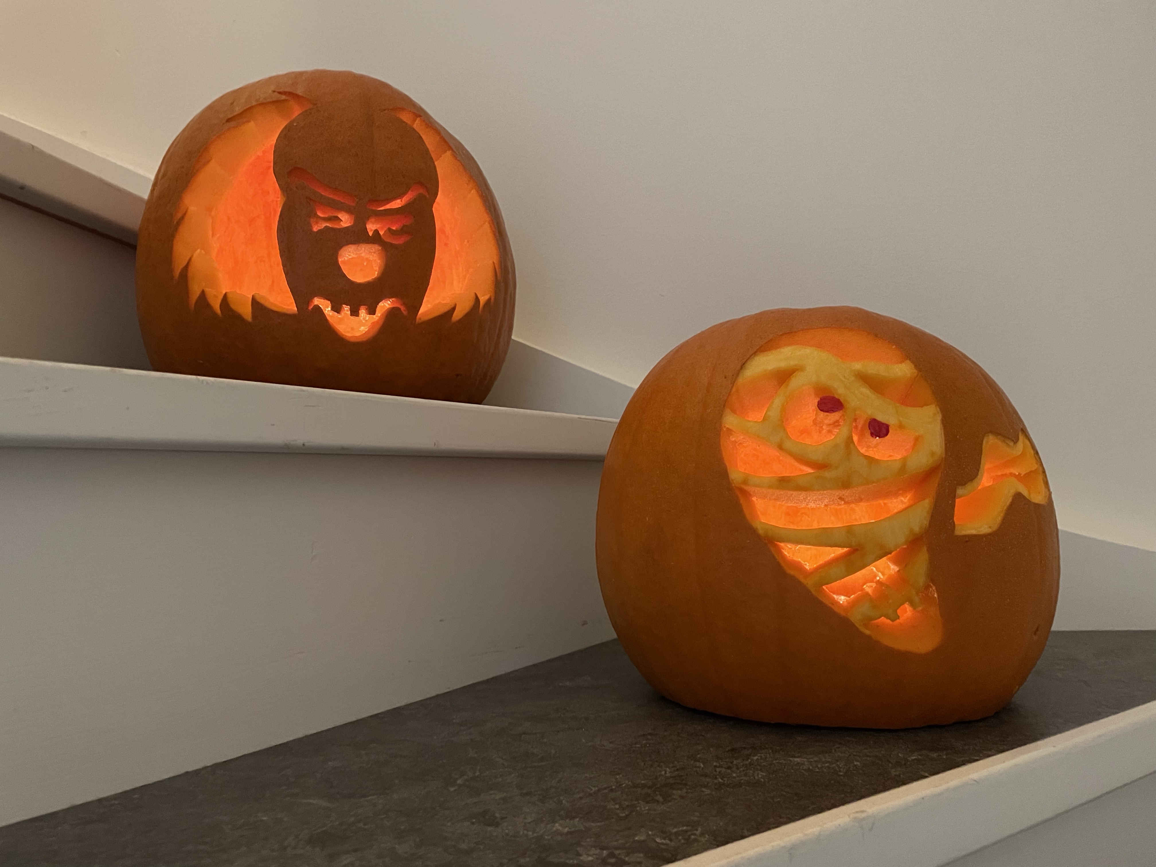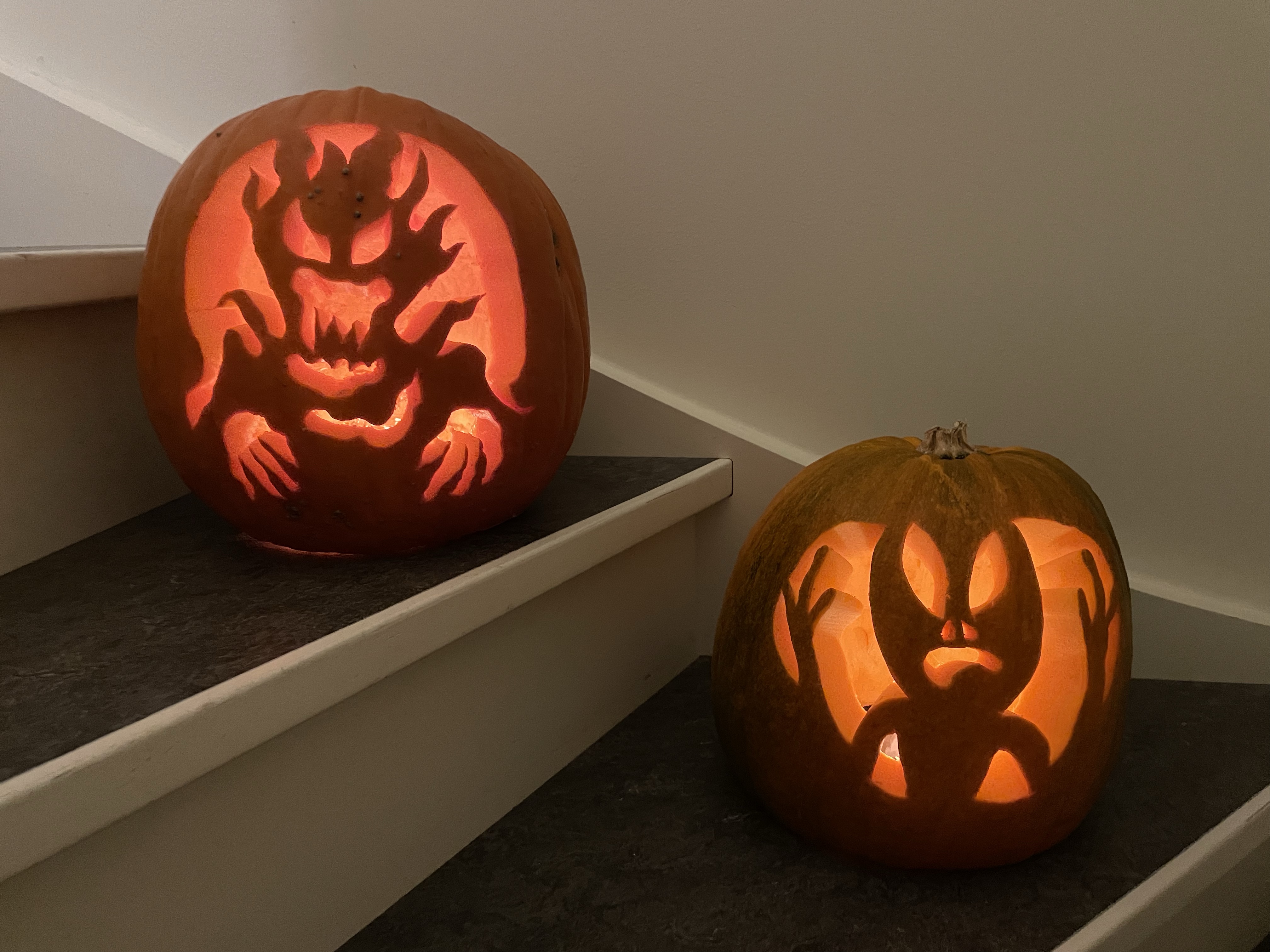 …Har jag nästan varje kväll denna vecka ägnat mig åt att karva ut fina Halloweenpumpor åt mig själv, kompisar, samt två företag. Jag tycker det superkul att utmana mig själv att karva fram olika motiv och glädja andra med något som de gillar.