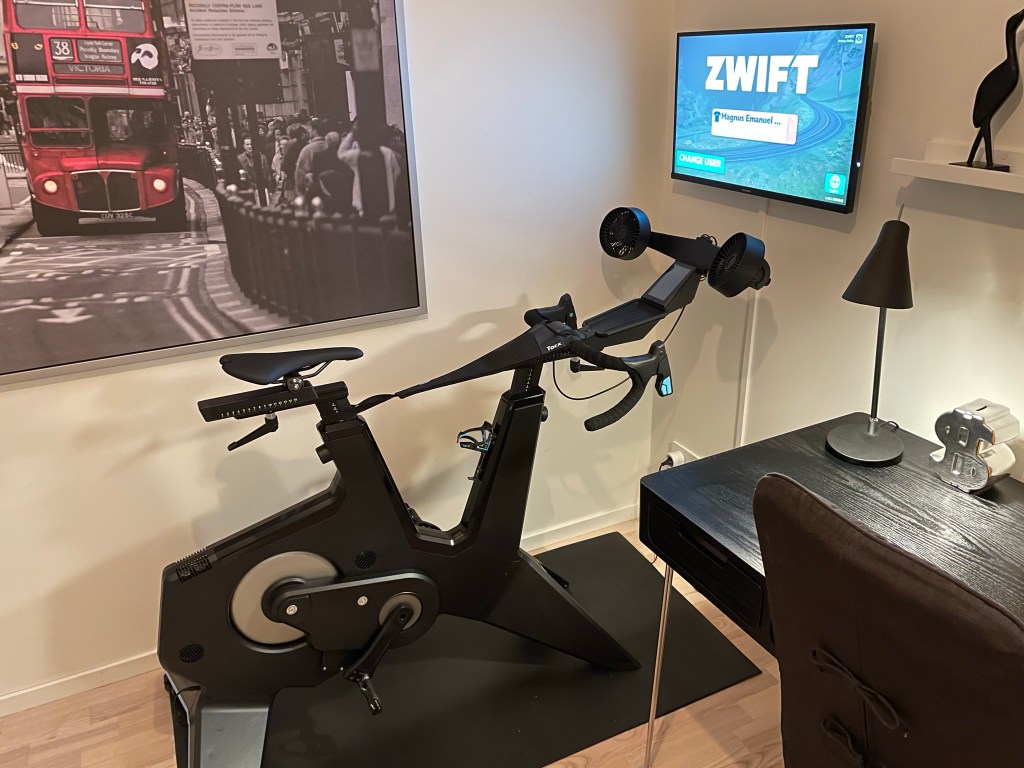 I förra veckan möblerade jag om i mitt arbetsrum/träningsrum, så att jag nu sitter på min cykeltrainer i ena hörnet av rummet mot en vägg. Tidigare hade jag trainern vid fönstret.