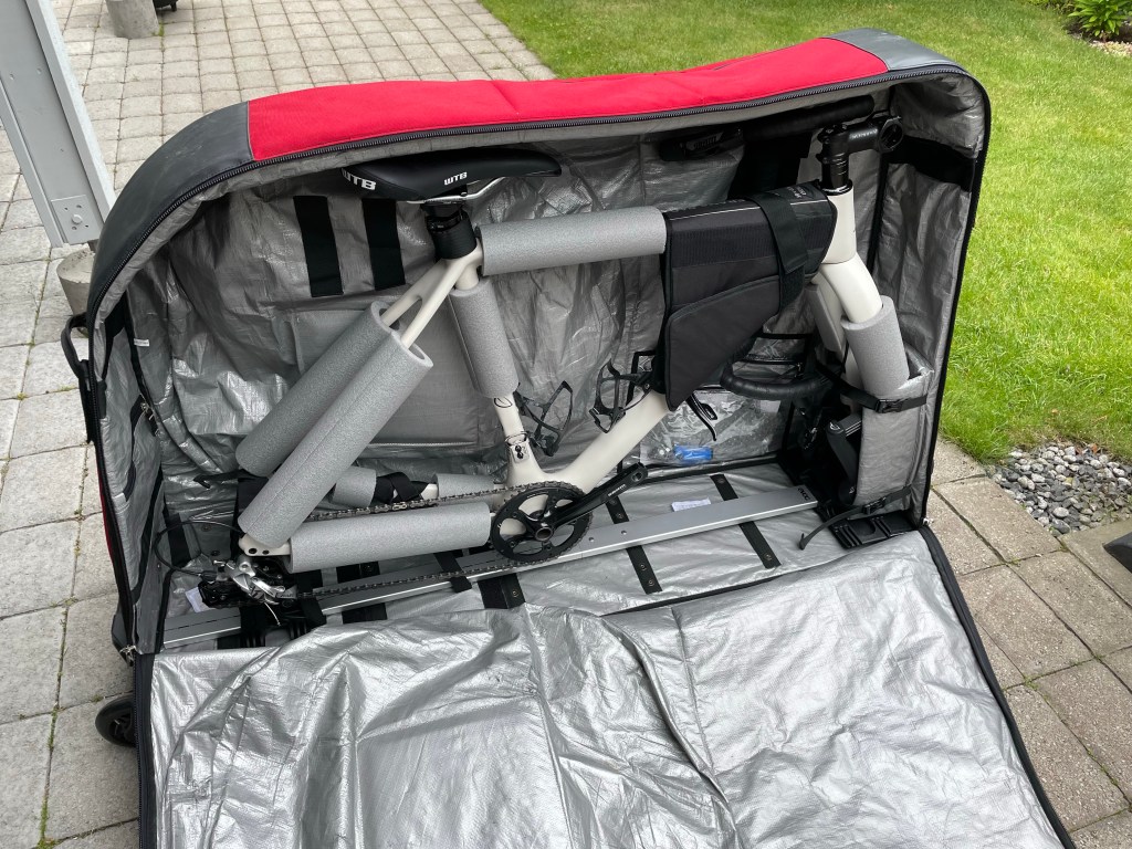 Idag har jag packat min gravelbike i cykelväskan och jag har försökt att skydda de mest utsatta delarna av cykeln med hjälp någon typ av rörisolering som jag hittade på Biltema.