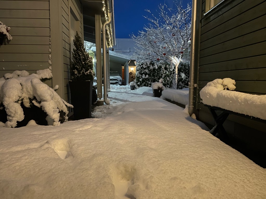 Från lite lätt snöfall i lördags till ett mastodontsnöfall på söndagkvällen. Igår när jag körde hem från stan, så snöade det så kraftigt att jag såg kanske 1m framför bilen. Lite läskigt, men som tur var så var inte så mycket trafik och körde man bara mjukt och försiktigt, så tuggade bilen sig fram rätt bra. Igår var väl en sådan där dag då det faktiskt var grymt med fyrhjulsdrift på bilen, vilket jag inte annars tycker jag har så mycket nytta av i Stockholm.