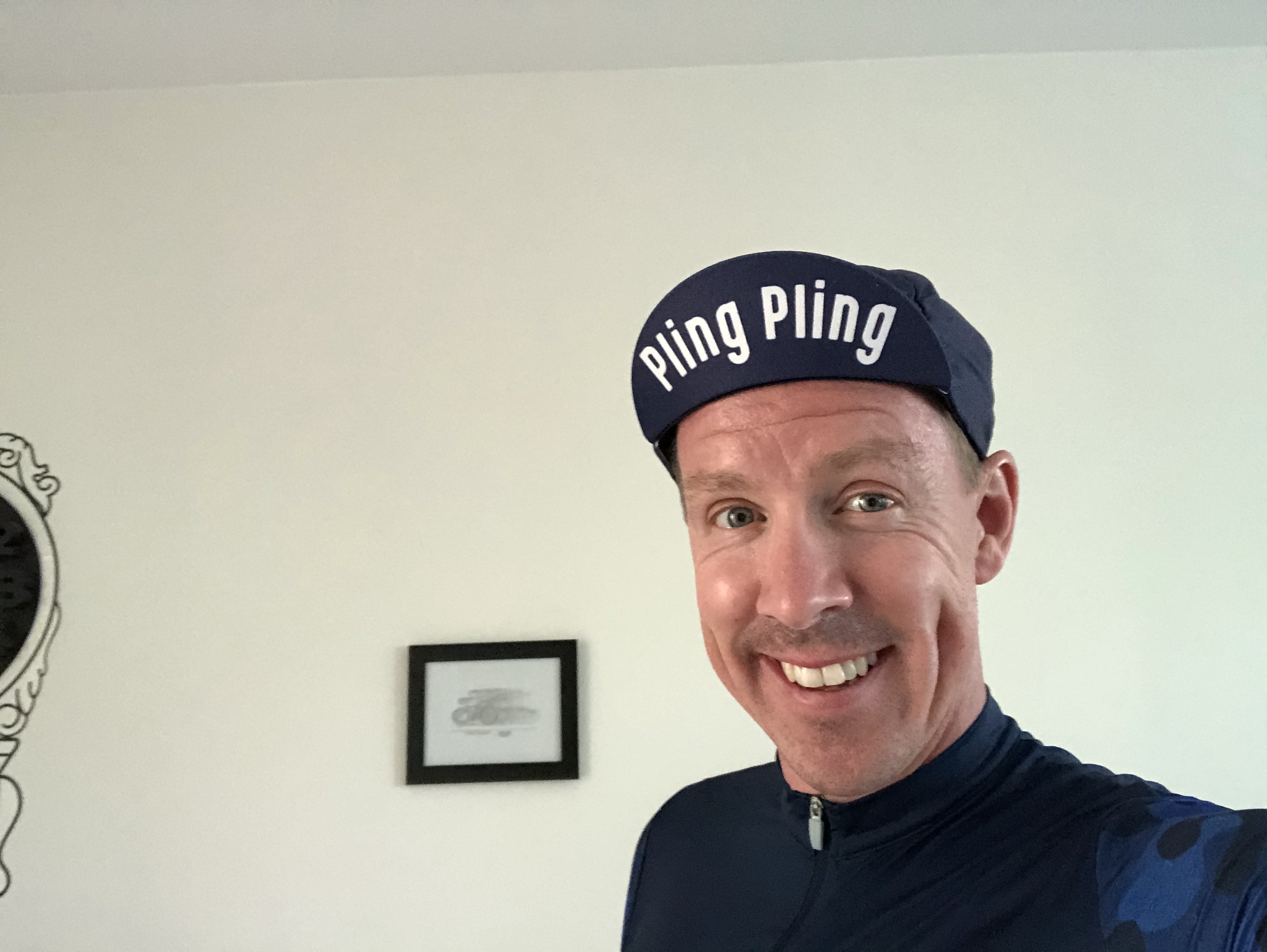 När jag ändå var där kunde jag inte låta bli att köpa La Chemise egna cykeltröja och cykelkeps som har snygg grönaktig färg och ett tryck med 4 cyklister i olika färger.