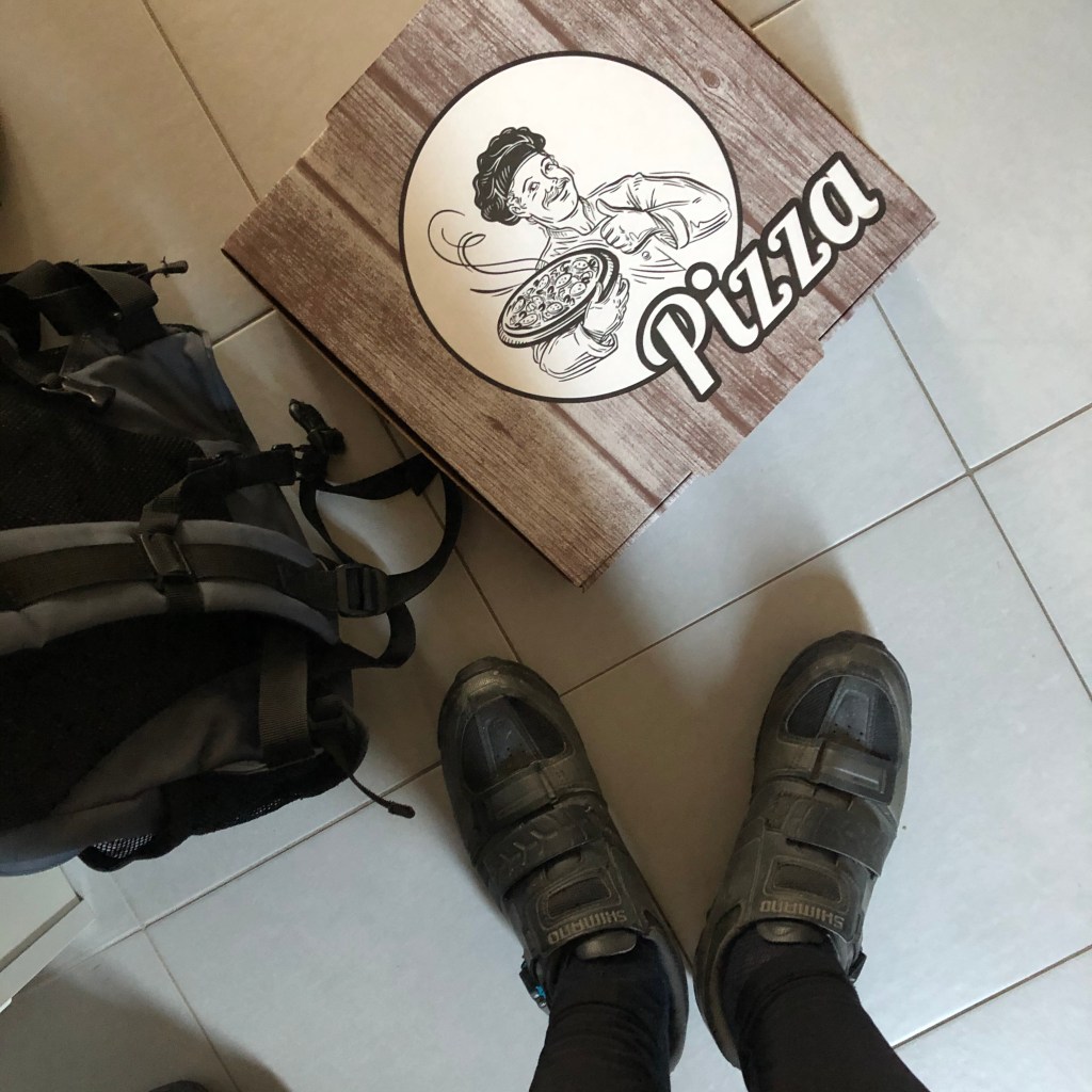 På vägen hem stannade jag hos den lokala pizzerian och köpte med mig en pizza till middag. Jag lyckades få hem den utan att förstöra den allt för mycket på cykeln. Valde med flit en Calzone som klarar av en cykelfärd lite bättre än en vanlig pizza.
