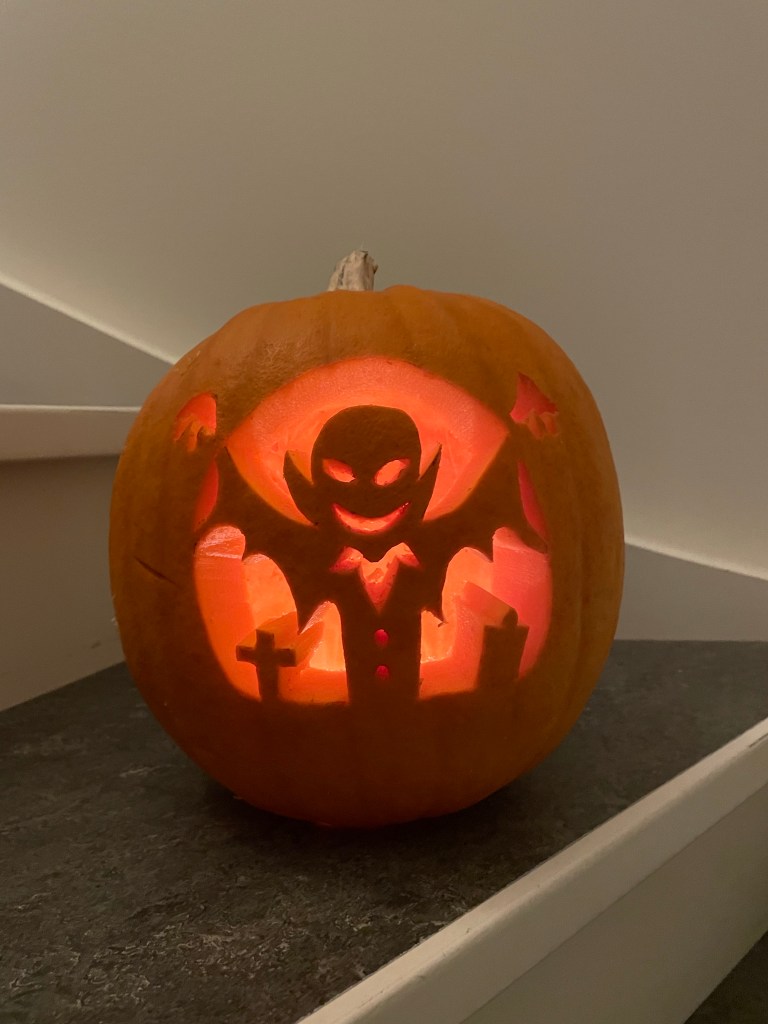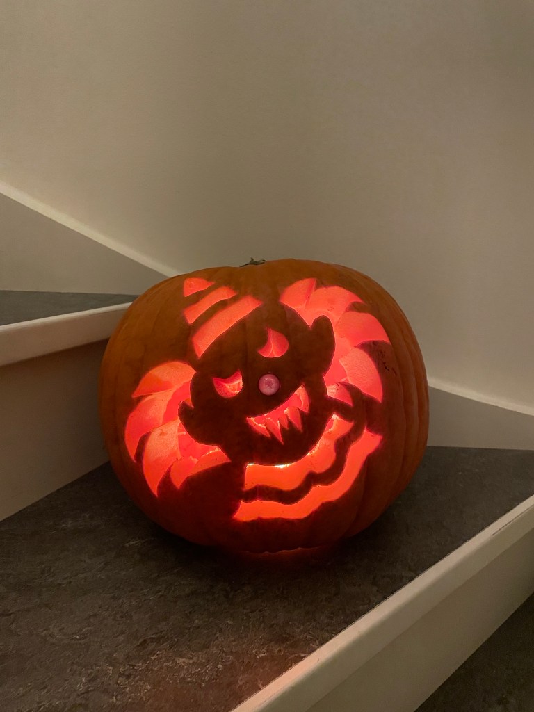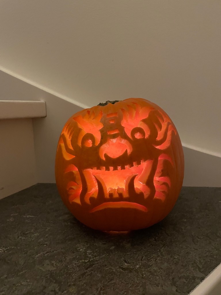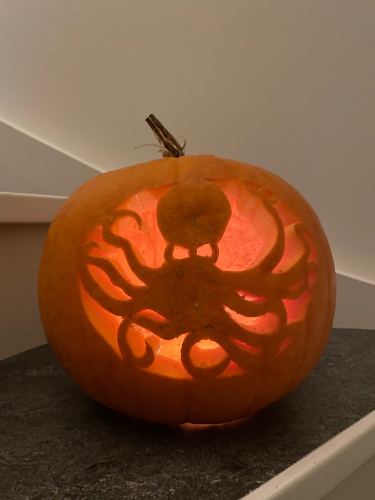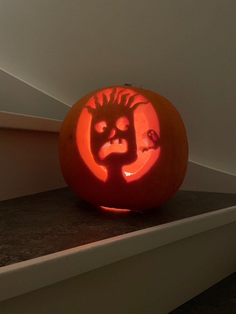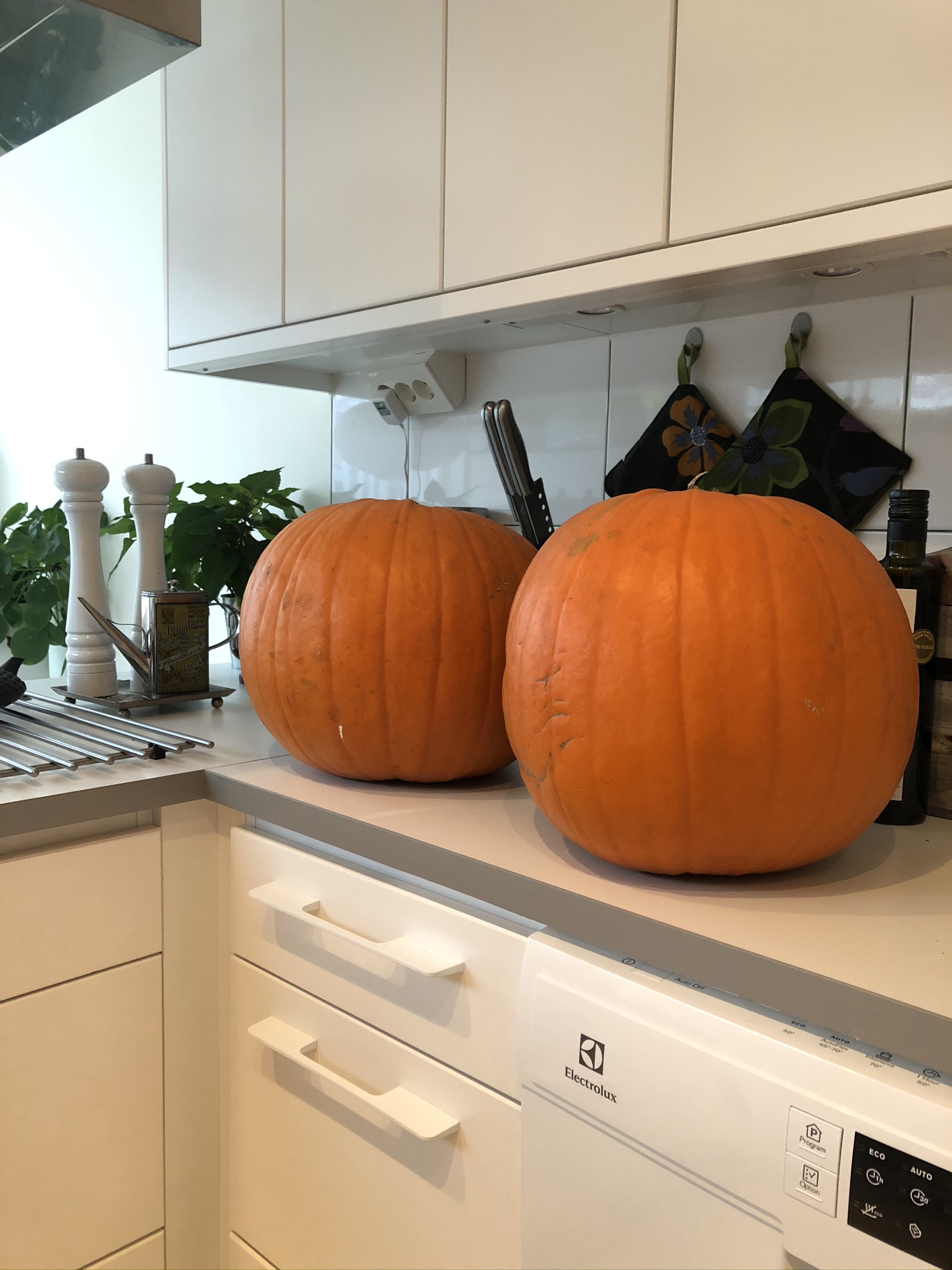 Till mig själv har bara gjort en egen pumpa som ikväll ska välkomna små och kanske mellanstora spöken. Men för att verkligen spinna loss i år, så gick jag ut med att jag gärna kunde hjälpa grannar, nära och kära med att göra pumpor som inte ser ut som den klassiska 🎃.