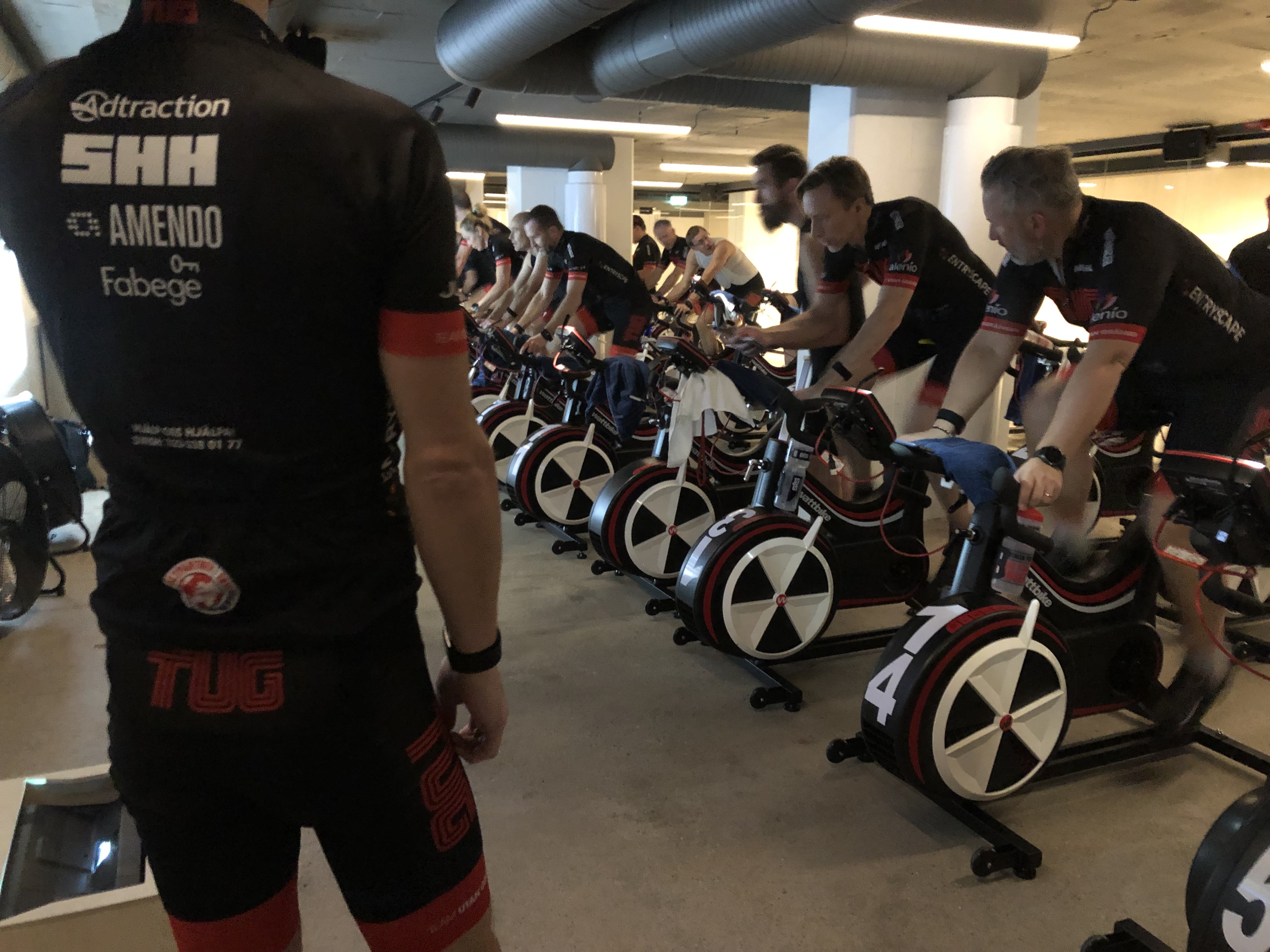 Idag samlade vi oss i Team Utan Gränser för ett andra cykelintervallpass på Studio L’Echelon på Östermalm i Stockholm. Det var rätt många deltagare idag som även var med förra veckan, men vi hade också ett tillskott av flera nya och lite kompisar till medlemmar. Totalt blev vi över 30 personer, vilket var kul!