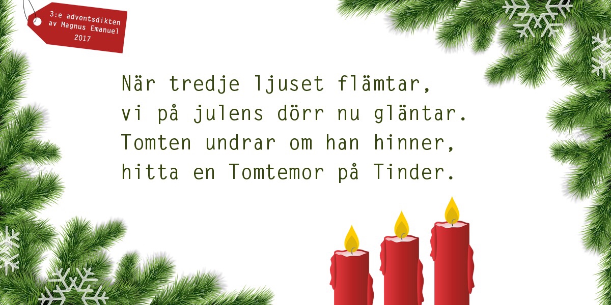 Här kommer fortsättningen på min egenskriva samling av adventsdikter. Missa inte sista dikten nästa söndag.