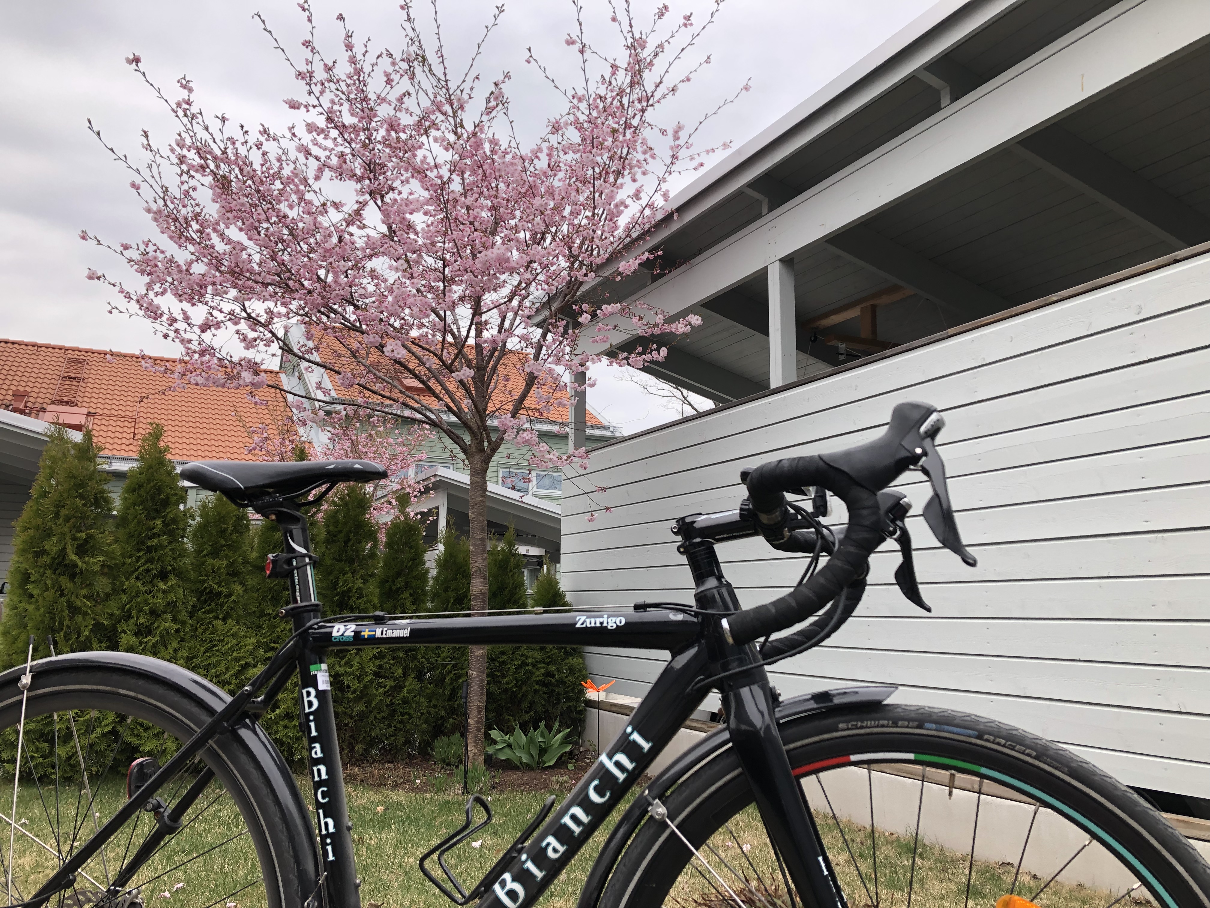 Eftersom solen strålade och temperaturen klättrat upp mot +10 grader tyckte jag det var dags för utomhuspremiär idag. Jag har ju cyklat utomhus med min elcykel när jag pendlat, men idag blev det premiär på cykel utan elassistans.
