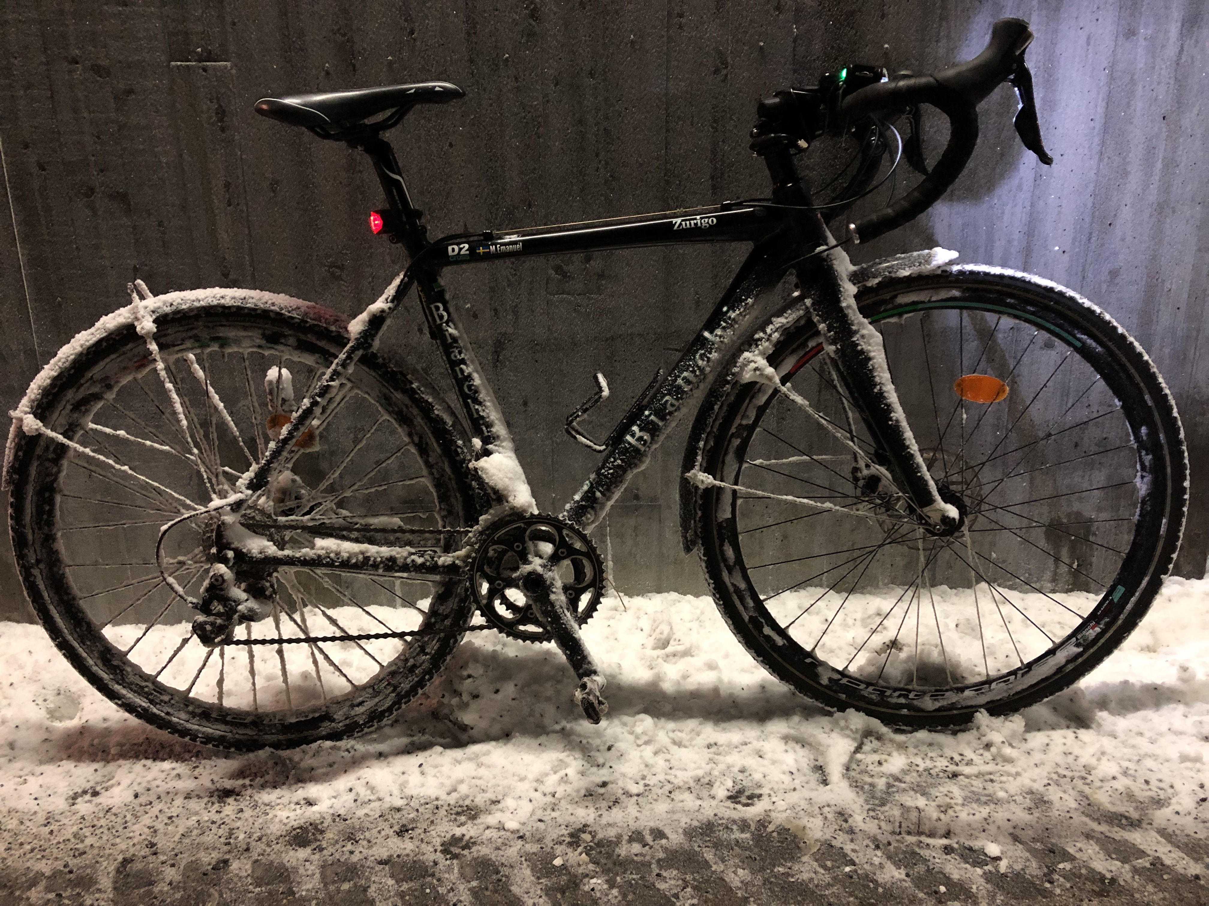 Jag kom hem helskinnad, men lite besviken på att jag inte kunde ta mig till jobbet på cykeln pga att det snöat rejält. Nere i Täby hörde jag att man tidigt varit ute och sopsaltat, så där var det tydligen inga problem att cykla. Men dit kom jag ju aldrig.
