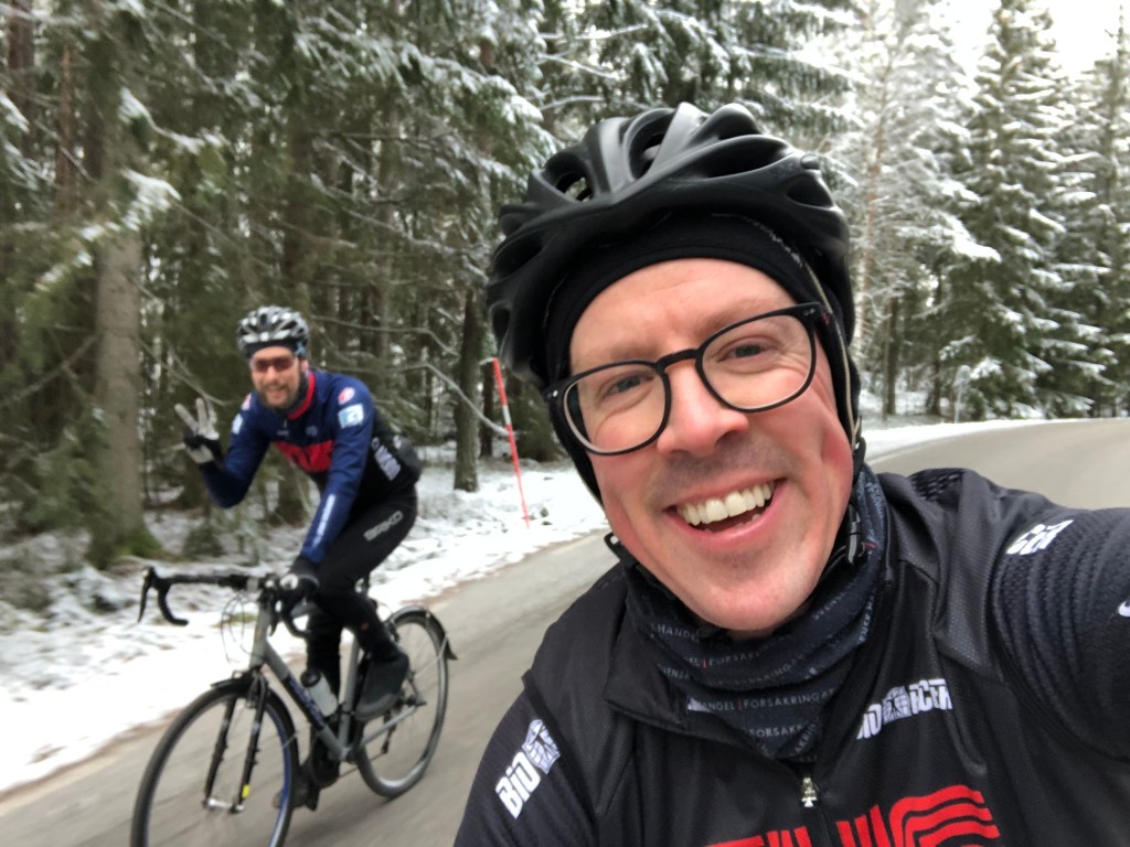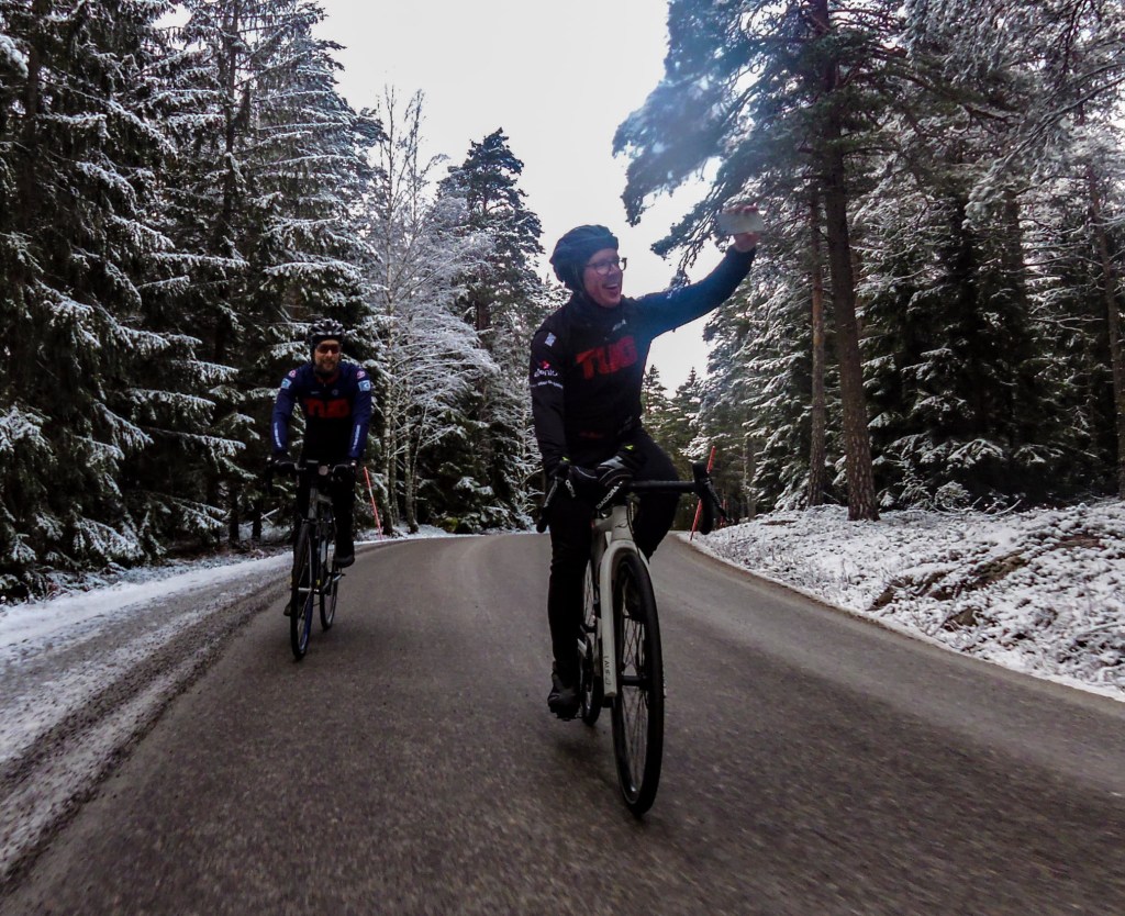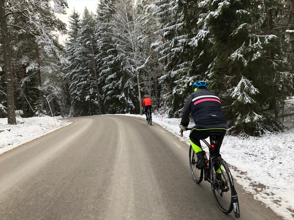 Vintercykling är också något som kan vara helt fantastiskt, men det kräver sin utrustning för att vara behaglig. Den bästa vintercyklingen får man när det kanske är runt -5 grader och helst när det fallit nysnö. Vägarna ska välplogade och helst osaltade. Därför är det bäst att försöka leta sig ut till det mindre vägnätet utanför stan eller orten där man bor. I Åkersberga och Vallentuna finns gott om småvägar som har detta här och där.