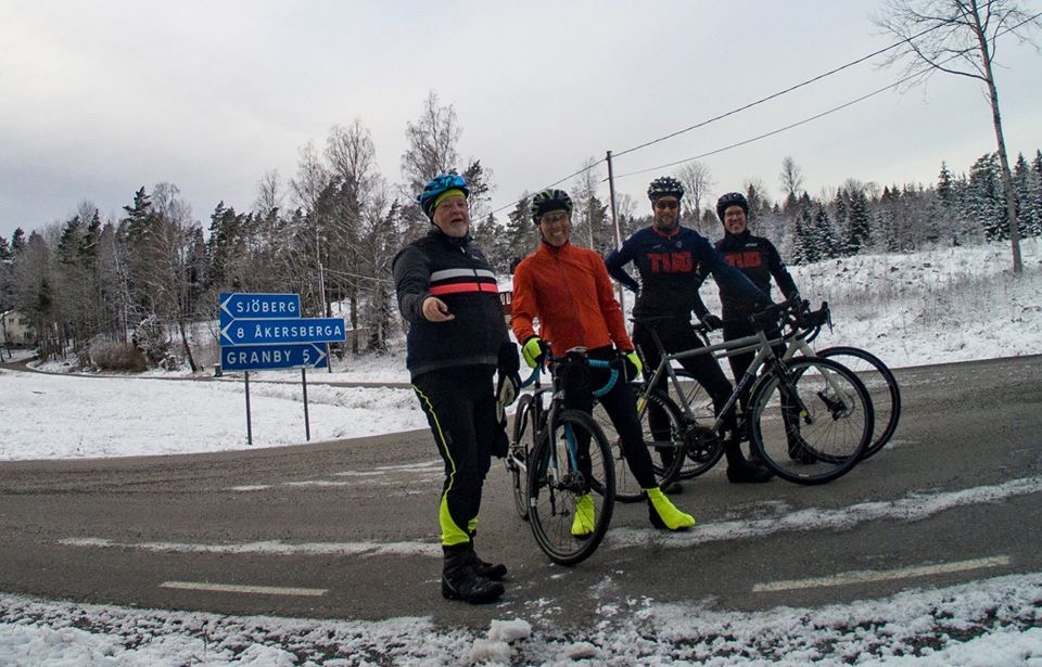 Tre glada prickar iform av mina cykelvänner och teamkompisar Gerry, Tom-Erik och Robert S ville trotsa kyla och cykla en kortare tur runt sjön Garnsviken.