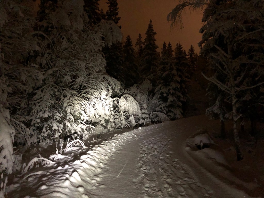 Bilden är från grusvägen mellan Täljö och Rydbo på vägen hem igår kväll. Den var fint snöröjd på morgonen, men lättcyklad ändå trots nyfallen snö.